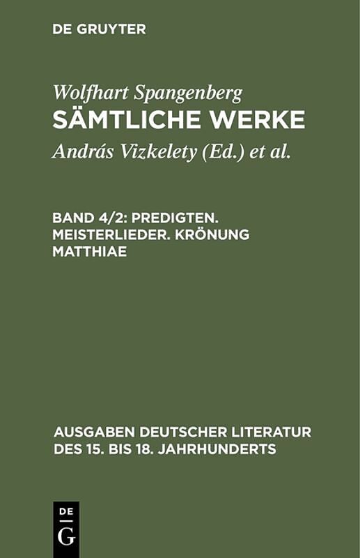 Dieser Titel, "Predigten. Meisterlieder. Krönung Matthiae", ist eine wissenschaftliche Publikation, erschienen bei De Gruyter Brill. Ausführliche Beschreibung, Inhaltsverzeichnis und weitere Angaben finden Sie auf der Verlagswebsite: https://www.degruyterbrill...