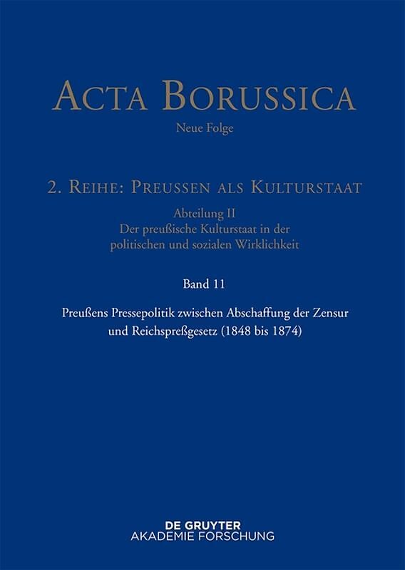 The volume documents Prussian press policy from the lifting of censorship in 1848 and the legal provisions of the 1874 Press Act. The examined sources reveal the numerous ways in which the press lacked freedom despite the absence of censorship during these de...