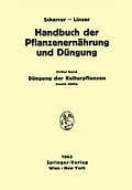 der zweiten Hälfte.- IX. Die Düngung im Obstbau.- A. Allgemeine physiologische Grundlagen.- a) Unterlagen.- b) Wachstums- und Ertragsverlauf.- c) Jährlicher Entwicklungszyklus.- d) Kältebedürfnis und verlängerte Ruheperiode.- e) Photoperiodizität.- f) Blütenknospenbildung.- g) Befruchtung.- h) Fruchtentwicklung.- i) Erträge.- k) Wurzelentwicklung.- l) Mykorrhiza.- m) Bodenmüdigkeit.- Literatur.- B. Der Wasserbedarf der Obstgehölze.- a) Bedürftigkeit der Arten.- b) Wirkung herabgesetzter Wasserversorgung.- c) Der Wasserverbrauch der Obstanlagen.- Literatur.- C. Nährstoffaufnahme und Nährstoffentzug bei Obstgehölzen.- a) Die aufnehmenden Pflanzenteile.- b) Die zeitliche Aufnahme und Verteilung der Nährstoffe in der Pflanze.- c) Der Nährstoffentzug.- Literatur.- D. Der Ernährungszustand der Obstgehölze.- a) Blattanalyse.- b) Die einzelnen Nährstoffe.- 1. Stickstoff.- 2. Phosphor.- 3. Kalium.- 4. Magnesium.- 5. Calcium.- 6. Eisen.- 7. Mangan.- 8. Bor.- 9. Zink.- 10. Kupfer.- 11. Molybdän.- 12. Andere schädliche Elemente.- Literatur.- Blattanalyse.- Stickstoff.- Phosphor.- Kalium.- Magnesium.- Calcium.- Eisen.- Mangan.- Bor.- Zink.- Kupfer.- Molybdän.- Andere schädliche Elemente.- E. Die Bedeutung der Bodenkultursysteme bei der Ernährung der Obstgehölze.- a) Der Einfluß auf die Wasserversorgung.- b) Der Einfluß auf die Nährstoffversorgung.- Literatur.- F. Düngungsmethoden.- a) Oberflächendüngung.- b) Tiefendüngung.- c) Blattdüngung.- d) Stamminjektionen und andere Methoden.- Literatur.- G. Düngeprogramme.- a) Der Apfel.- b) Die Birne.- c) Der Pfirsich.- d) Aprikose, Pflaume und Zwetsche.- e) Kirsche.- f) Mandel, Wal- und Haselnuß.- g) Ribes-Arten.- h) Rubus-Arten.- i) Vaccinium-Arten.- k) Erdbeere.- Literatur.- X. Die Düngung im Weinbau.-A. Einleitung.- B. Die Standortansprüche der Rebe.- C. Allgemeine Probleme der Weinbergsdüngung.- D. Die Humusdüngung.- a) Wirkung der Humusdüngung auf Ertrag und Qualität.- b) Die Quellen der Humusdüngung.- 1. Stallmist, Erdmist und Kompost.- 2. Die Strohdüngung.- 3. Die Gründüngung.- 4. Torfmull oder Düngetorf und andere Torfprodukte.- 5. Stadtmüll und Klärschlamm.- E. Die Kalkung.- F. Die Stickstoffdüngung.- G. Die Phosphatdüngung.- H. Die Kaliumdüngung.- J. Die Magnesiumdüngung.- K. Die Bordüngung.- L. Die Düngung mit weiteren Mikronährstoffen.- Literatur.- XI. Die Düngung im Blumen- und Zierpflanzenbau.- A. Einführung.- B. Allgemeiner Teil.- a) Voraussetzungen richtiger Düngung.- b) Grundlagen sachgemäßer Düngung.- c) Durchführung der Düngung.- d) Auswirkung der Dünger.- C. Spezieller Teil.- a) Düngung der Topfpflanzen.- b) Düngung der Schnittblumen.- c) Düngung der Sommerblumen.- d) Düngung der Stauden.- e) Düngung der Ziergehölze.- f) Düngung des Rasens.- D. Zusammenfassung (Übersichten).- a) Reaktionsansprüche.- b) Nährstoffmangelsymptome an Zierpflanzen.- Stickstoffmangel (Schädigungen vorwiegend an älteren Blättern).- Phosphorsäuremangel (Schädigungen vorwiegend an älteren Blättern).- Kaliummangel (Schädigungen vorwiegend an älteren Blättern).- Magnesiummangel (Schädigung vorwiegend an älteren Blättern).- Zinkmangel (Schädigungen vorwiegend an alten Blättern).- Molybdänmangel (Schädigungen vorwiegend an älteren Blättern).- Eisenmangel (Schädigungen vorwiegend an jungen Blättern).- Manganmangel (Schädigungen vorwiegend an jungen Blättern).- Schwefelmangel (Schädigungen vorwiegend an jungen Blättern).- Kupfermangel (Schädigungen vorwiegend an jungen Blättern).- Kalkmangel (Schädigungen vorwiegendan jungen Blättern).- Bormangel (Schädigungen vorwiegend an jungen Blättern).- Allgemeiner Nährstoffmangel.- c) Überdüngungssymptome an Zierpflanzen.- d) Richtwerte für die Beurteilung von Bodenuntersuchungsergebnissen.- e) Nährstoffgehalte bei variierter Ern ihrung.- E. Schlußwort.- Literatur.- XII. Die Düngung der Forstpflanzen.- A. Der Nährstoffentzug von Forstpflanzen.- a) Nährstoffentzug von Jungpflanzen in Erziehungsstätten.- b) Nährstoffentzug von Waldbeständen und zeitlicher Verlauf der Nährstoffaufnahme.- B. Die Beurteilung der Nährstoffversorgung bei Forstpflanzen.- a) Bodenuntersuchung.- b) Blatt- bzw. Nadelanalyse.- c) Nährstoffmangelsymptome.- d) Gefäß- und Freilandversuch.- C. Die Düngung in Pflanzenerziehungsstätten.- a) Düngung mit organischem Material.- b) Mineraldüngung.- 1. Kalk.- 2. Stickstoff, Phosphorsäure, Kali, Magnesium.- D. Die Düngung von Waldbeständen.- a) Die Düngung der Kulturen.- 1. Düngung mit organischem Material.- 2. Mineraldüngung.- b) Die Düngung des Stangen- und Baumholzes.- c) Düngung der Pappel.- E. Die Rohhumusmelioration.- F. Die Technik der Düngerausbringung im Wald.- G. Einfluß der Düngung auf die Fruktifikation der Waldbäume.- Literatur.- XIII. Die Düngung von Sonderkulturen.- A. Die Düngung von Arznei- und Gewürzpflanzen.- a) Einleitung.- b) Pflanzen, die Alkaloide als Hauptwirkstoffe enthalten.- 1. Die Tollkirsche (Atropa bella-donna L., Solanaceae).- 2. Der Gewürzpaprika (Capsium annuum L., Solanaceae).- 3. Der Stechapfel (Datura stramonium L., Solanaceae).- 4. Das Schwarze Bilsenkraut (Hyoscyamus niger L., Solanaceae).- 5. Hinweise auf weitere Alkaloidpflanzen.- c) Pflanzen, die ätherische Öle als Hauptwirkstoffe enthalten.- 1. Der Kümmel (Carum carvi L., Umbelliferae).- 2. DerKoriander (Coriandrum sativum L., Umbelliferae).- 3. Der Fenchel (Foeniculum vulgare Mill., Umbelliferae).- 4. Der Majoran (Majorana hortensis Moench, Labiatae).- 5. Die Pfefferminze (Mentha piperita L., Labiatae).- 6. Der Gartensalbei (Salvia officinalis L., Labiatae).- 7. Weitere Arten aus der Familie der Labiaten.- 8. Der Baldrian (Valeriana officinalis L., Valerianaceae).- 9. Die Echte Kamille (Matricaria chamomilla L., Gompositae).- d) Pflanzen mit anderen Hauptwirkstoffen.- e) Schlußbetrachtung.- Literatur.- B. Weitere Sonderkulturen.- a) Tabak (Nicotiana tabacum, N. rustica)..- 1. Ansprüc