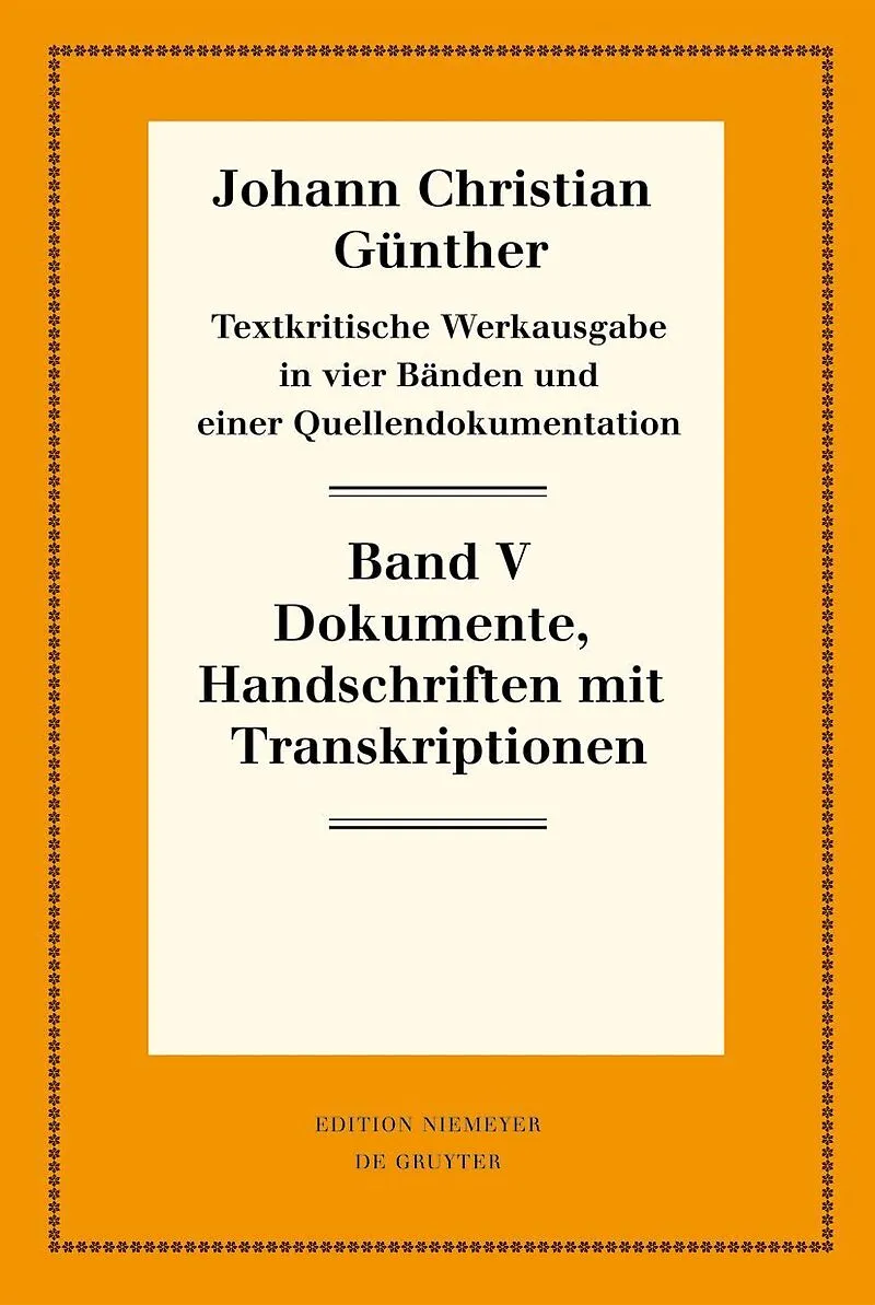 The documentary volume offers a complete reproduction of the autograph versions, duplicates, and single reprints of Günther's poetry, thus providing a clear impression of the works and their rare textual sources. Of the documented reprints and collected manus...