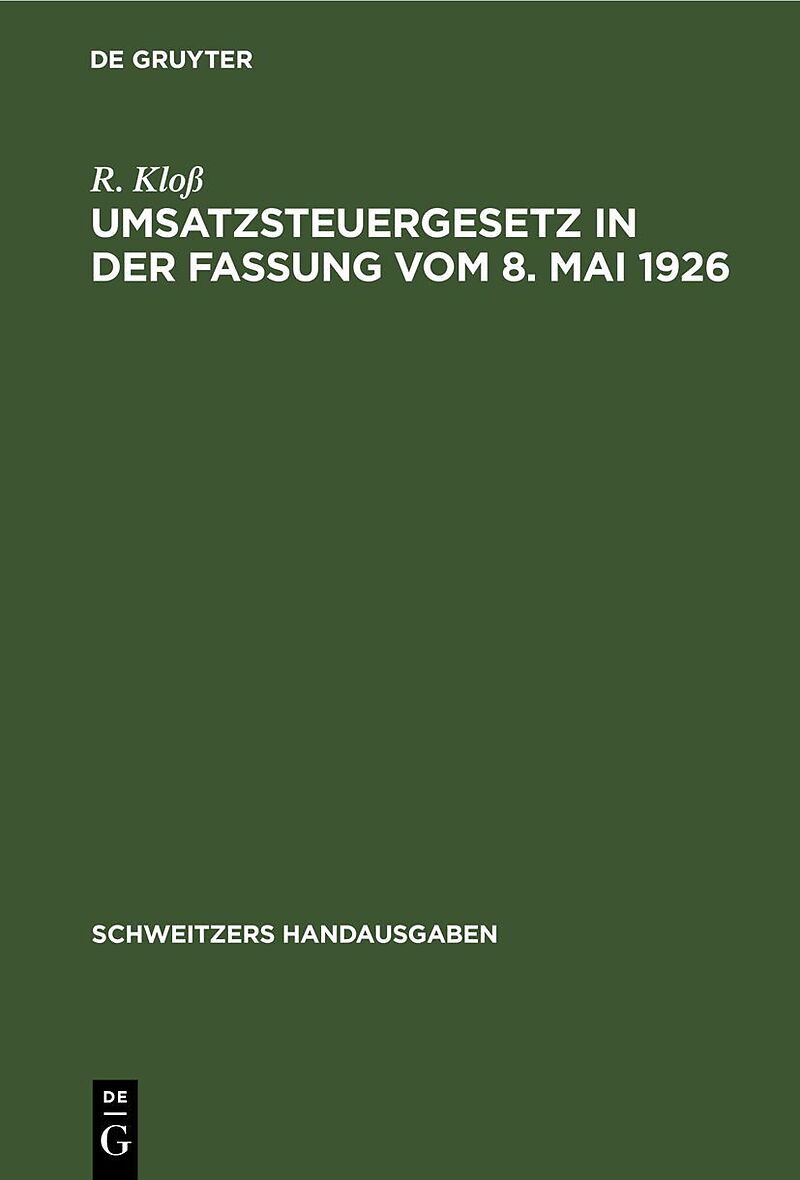 Dieser Titel, "Umsatzsteuergesetz in der Fassung vom 8. Mai 1926", ist eine wissenschaftliche Publikation, erschienen bei De Gruyter Brill. Ausführliche Beschreibung, Inhaltsverzeichnis und weitere Angaben finden Sie auf der Verlagswebsite: https://www.degruyt...