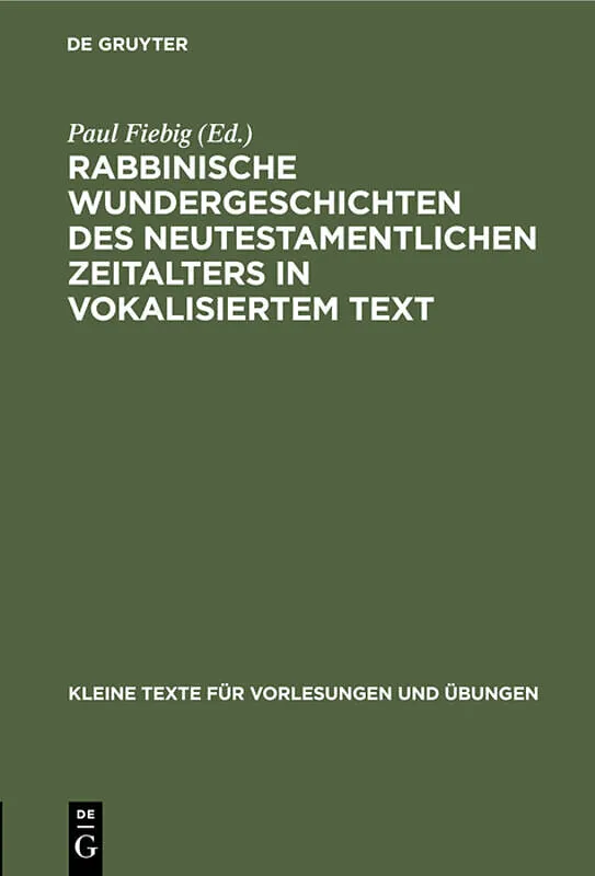 Frontmatter -- 1. Plötzlicher Tod eines Mörders durch eine schlänge -- 2. Regenwunder des Honi, des kreisziehers -- 3. Regenwunder des Nakdimon ben Gorion -- 4. Heilungen des Hanina ben Dosa durch gebet -- 5. Wunderbare Brotspende an Hanina ben Dosa -- 6. Hani...