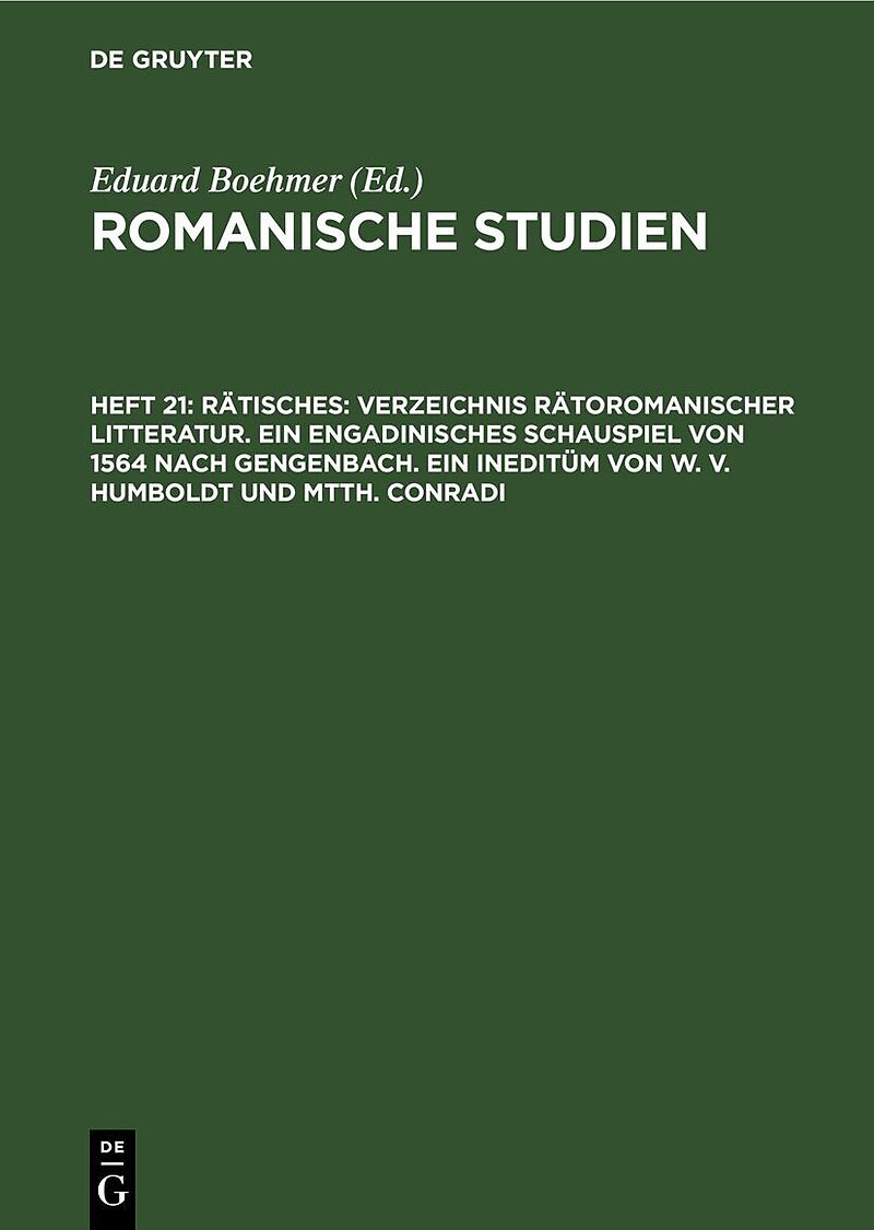 Rätisches: Verzeichnis Rätoromanischer Litteratur. Ein Engadinisches Schauspiel von 1564 nach Gengenbach. Ein Ineditüm von W. V. Humboldt und Mtth. Conradi
