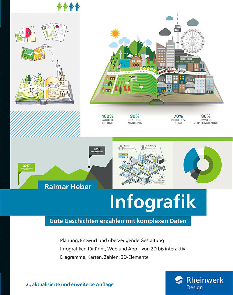 Ein Buch für alle, die komplexe Daten verständlich aufbereiten wollen! Strukturiert und praxisnah behandelt Raimar Heber, Art Director Infografik bei der dpa, alle Aspekte rund um eine gelungene Infografik. Anhand von Beispielen erfahren Sie alles von der Rech...Ein Buch für alle, die komplexe Daten verständlich aufbereiten wollen! Strukturiert und praxisnah behandelt Raimar Heber, Art Director Infografik bei der dpa, alle Aspekte rund um eine gelungene Infografik. Anhand von Beispielen erfahren Sie alles von der Recherche über Entwurf bis zur Reinzeichnung. Dabei werden wichtige Themen wie die Hierarchisierungen, Benutzerführung, Storytelling und die Verbreitung von Infografiken behandelt. Nicht vergessen wird natürlich die Gestaltung: Diagramme, Karten, 3D-Elemente und die geschickte Visualisierung von Zahlen uvm. Auch zu interaktiven und mobilen Infografiken sowie Infografik und 3D! Der Inhalt im Überblick: Kapitel 1: Infografik: eine erste Einordnung Die Geschichte der Infografik Wann wird Infografik eingesetzt? Was kann sie leisten? Was nicht? Was macht eine gute Infografik aus Aktuelle Trends Kapitel 2: Briefing, Recherche und Entwurf Kapitel 3: Storytelling Arten des Erzählens Storyboard, Spannungsaufbau und Zeitablauf Responsives Design Kapitel 4: Grundelemente für Infografiken Balken, Säulen, Torten, Fieberkurven Stammbäume und Ablaufdiagramme Schematische Darstellungen, Schnitte, Explosionsdarstellungen Karten Verzerrung und Perspektive Arten der Beschriftung Zahlen visualisieren Kapitel 5: Besonderheiten der Gestaltung Kleine Farbenlehre Kleine Typolehre Symbole und kulturelle Unterschiede der Wahrnehmung Kapitel 6: Darstellung der wichtigsten Infografik-Elemente Gegenstände Menschen und Tiere Schatten Kapitel 7: Interaktive Infografik für Web und App Aufbau der Animation Leserführung und Navigation Spezielle Gestaltungselemente Interaktive Visualisierungen mit HTML 5 und Hype Interaktive Infografiken nach Responsive-Design-Prinzipien Interaktive Karten Kapitel 8: Infografik und 3D 3D-Elemente in Infografiken: Vor- und Nachteile 3D-Visualisierungen mit Cinema 4D oder 3ds max 3D-Elemente integrieren Kapitel 9: Korrektur, Anpassung und Distribution Medium-übergreifend gestalten Problemlösungen (Zeitplanung, Datenbeschaffung, Illustrationen) Survival-Kit für Infografiker Besonderheiten fremder Märkte Auffindbarkeit von Infografiken in Datenbanken IPTC, SEO Möglichkeiten der Weiterverarbeitung Kapitel 10: Junge Infografiker Ausbildung, Praktika und Schulen Mappe und Bewerbung