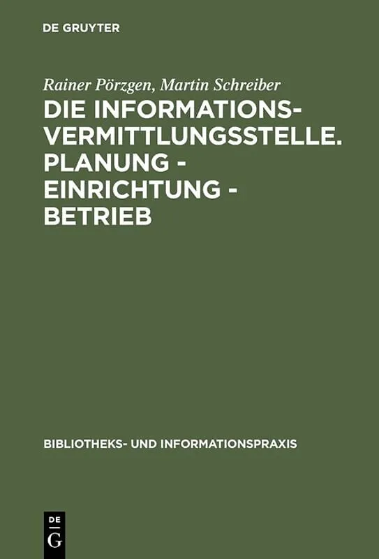 Dieser Titel, "Die Informationsvermittlungsstelle. Planung - Einrichtung - Betrieb", ist eine wissenschaftliche Publikation, erschienen bei De Gruyter Brill. Ausführliche Beschreibung, Inhaltsverzeichnis und weitere Angaben finden Sie auf der Verlagswebsite: h...
