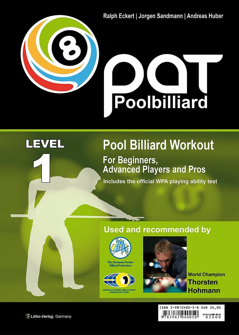 This workout is written by Ralph Eckert, Jorgen Sandman, and Andreas Huber and is used and recommended by the European Pocket Billiard Federation (EPBF) as well as the World Pool-Billiard Association (WPA). It includes the official WPA Playing Ability Test (PA...