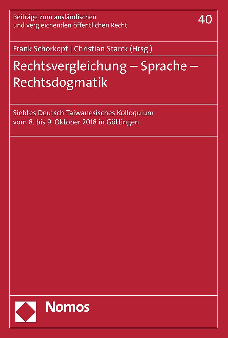 Der Band gibt die Vorträge des siebten deutsch-taiwanesischen Kolloquiums in Göttingen wieder. Das Kolloquium stellte dieses Mal die Rechtsvergleichung in den Mittelpunkt und griff von dort in den Zusammenhang von Recht, Rechtsdogmatik und Sprache aus. Damit w...