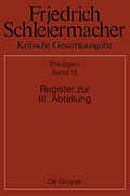 The index volume concludes the 14 text volumes of the sermons section and includes five comprehensive indices: I. Edited sermons; II. Names, sermon tradents, and Bible passages; III. Themes and keywords; IV. Literature V. Songs included in the song sheets. Aut...