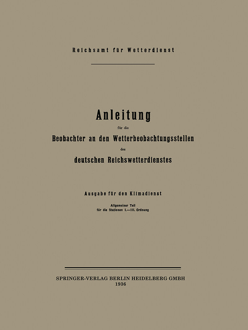 Anleitung für die Beobachter an den Wetterbeobachtungsstellen des deutschen Reichswetterdienstes