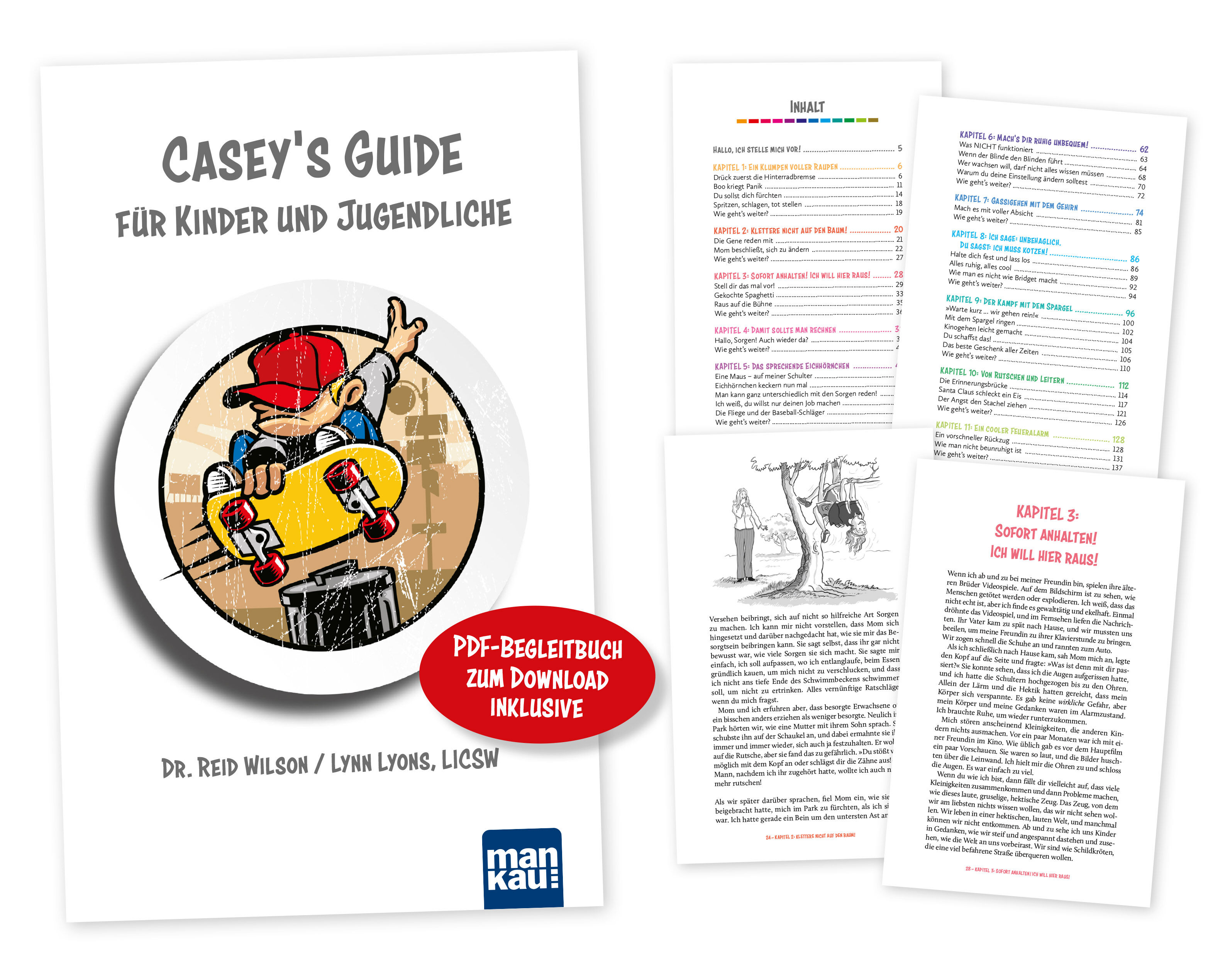INHALT EINLEITUNG KAPITEL 1 - Wie Sorgen entstehen und warum sie wieder verschwinden müssen Wenn man es mit der Besorgnis übertreibt KAPITEL 2 - Angeboren oder erlernt? Egal, Sie haben einen Job zu erledigen Am Anfang war die Verletzlichkeit Neigung bedeutet nicht Schicksal Ängstliche Eltern, besorgte Kinder Die Macht positiver Vorbilder Noch eines ... KAPITEL 3 - Zu der Zeit schien das eine gute Idee zu sein ... "Die Menschenwelt im Übermaß sich in den Alltag drängt" Stell dir vor ... Sturer Perfektionismus KAPITEL 4 - So neu ist das gar nicht Die Ankunft der Sorgen Die Geschichte zweier Zahnreinigungen KAPITEL 5 - Die gleichen Sorgen, aber unterschiedliche Antworten Wer ist der Chef? Die Kinder reden mehr, Sie reden weniger Hüten Sie sich vor der Detailfalle Die Sorgen an ihren Platz verweisen KAPITEL 6 - Je unsicherer, desto besser Das große Ganze steckt voller Ungewissheit Zwei Perspektiven: eine Erzählung Ein Vorbild ist mehr wert als tausend Worte Verlass dich auf mich ... aber bitte nicht zu sehr Schule, Sonderregelungen und Krücken KAPITEL 7 - Das Gehirn umschulen: Am wichtigsten ist das Tun Kommen Sie auf den Geschmack, Schritt für Schritt Hund sehen, bereitwillig stehen bleiben ... und das Ganze von vorn! KAPITEL 8 - Den Körper zur Ruhe bringen Vom Umgang mit dem Körper Normale Nervosität und Angstsensitivität KAPITEL 9 - Das Ziel vor Augen Das "Wollen" wollen Gehen Sie es langsam an Weniger Kämpfe ausfechten KAPITEL 10 - Wenn die Amnesie zuschlägt Stichwort Perfektion Autonomie kontra Angst: Schluss mit dem Anlehnen, jetzt heißt es aufstehen KAPITEL 11 - "Casey's Guide" verspricht Hilfe Sich mit Händen und Füßen wehren Sie werden überrascht sein KAPITEL 12 - Auf in Richtung Mut und Unabhängigkeit Haben Sie Ihre Hausaufgaben gemacht? Die Puzzleteile noch einmal ansehen Jedes Puzzleteil durchsprechen Wiederholen Sie den Vorgang am Beispiel einer vergangenen Situation Entwerfen Sie einen Plan für das gegenwärtige Ereignis Christies Aktionsplan Dein Aktionsplan Fortschritte belohnen Die Herausforderungen eines erfüllten Lebens WIE SIE IHREM KIND MIT "CASEY'S GUIDE" HELFEN Kapitel 1: Ein Klumpen voller Raupen Kapitel 2: Klettere nicht auf den Baum! Kapitel 3: Sofort anhalten! Ich will hier raus! Kapitel 4: Damit sollte man rechnen Kapitel 5: Das sprechende Eichhörnchen Kapitel 6: Mach's dir ruhig unbequem! Kapitel 7: Gassigehen mit dem Gehirn Kapitel 8: Ich sage: unbehaglich. Du sagst: Ich muss kotzen! Kapitel 9: Der Kampf mit dem Spargel Kapitel 10: Von Rutschen und Leitern Kapitel 11: Ein cooler Feueralarm Kapitel 12: The show must go on! Wichtige Internetadressen Danksagung