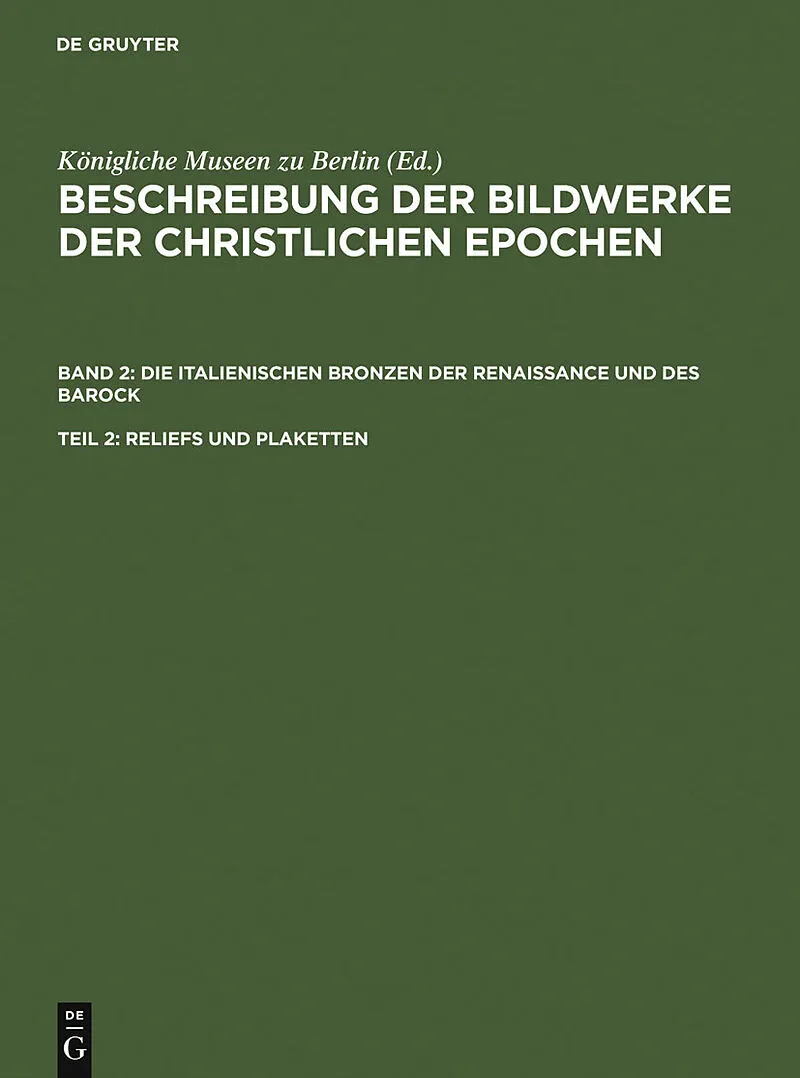 Keine ausführliche Beschreibung für "Reliefs und Plaketten" verfügbar. Klappentext Keine ausführliche Beschreibung für "Reliefs und Plaketten" verfügbar. Inhalt I-IV -- VORWORT -- INHALTSVERZEICHNIS -- I. Reliefs der Renaissance und des Barocks -- II. Plakett...