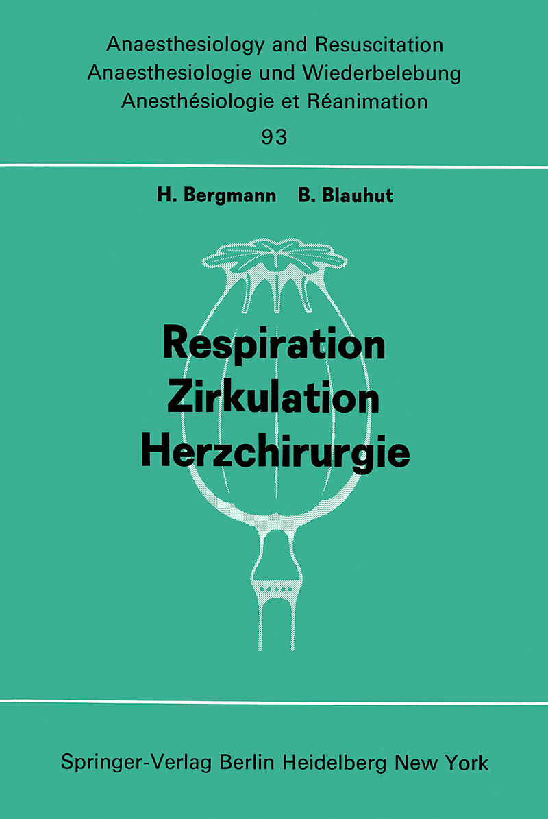 Freie Themen (2) (Respiration).- Vortrag Nr. 25 Theoretische und klinische Untersuchungen der Voraussetzungen zu suffizienter Sauerstoffversorgung bei großem intrapulmonalem Rechts-Links-Shunt.- Vortrag Nr. 26 Die Auswirkung intrapulmonaler Rechts-Links-Kurzschlüsse auf die CO2-Elimination.- Vortrag Nr. 27 Einfluß der inspiratorischen Sauerstoffkonzentration (FiO2) auf die Oxygenierung des Blutes bei hoher alveolar-arterieller Sauerstoffdruckdifferenz (AaDO2).- Vortrag Nr. 28 Zur Entstehung pulmonaler hyaliner Membranen: Akute disseminierte intravasale Gerinnung und konditionierende Faktoren.- Vortrag Nr. 29 Veränderungen der pulmonalen Compliance unter Beatmung mit positiv-endexspiratorischem Druck bei akuten Lungenerkrankungen.- Vortrag Nr. 30 Tierexperimentelle Untersuchungen zum Verhalten der Hämodynamik und Lungenfunktion bei zweitägiger Sauerstoffbeatmung mit positiv-endexspiratorischem Druck.- Vortrag Nr. 31 Die Verwendung der inspiratorisch-arteriellen Sauerstoffpartialdruck-Differenz (I-aDO2) zur Trendbeobachtung akuter Lungenerkrankungen. (Vortrag ausgefallen).- Vortrag Nr. 32 Der Einfluß des inspiratorischen Druckverlaufes auf die arteriellen Blutgaswerte narkotisierter und beatmeter Patienten.- Vortrag Nr. 33 Einfluß eines apparativen Totraumes (500 ml) auf den Arterialisierungseffekt in der Lunge.- Vortrag Nr. 34 Salbutamol-VentolinR zur Behandlung bronchospastischer Zustände bei Beatmungspatienten.- Vortrag Nr. 35 Bronchoalveoläre Spülung zur Therapie der Alveolarproteinose.- Vortrag Nr. 36 Prognose und Therapie nach Thoraxkontusion.- Freie Themen (3) (Zirkulation 1).- Vortrag Nr. 37 Beitrag zur Diskussion über den Einfluß des arteriellen pC02 auf die Coronardurchblutung.- Vortrag Nr. 38 Einfluß von Methohexital und Thiopental auf dieCoronarperfusion und die Sauerstoffversorgung des Herzens.- Vortrag Nr. 39 Der Einfluß von Althesin (Glaxo CT 1341) auf die Coronardurchblutung und den Metabolismus des menschlichen Herzens.- Vortrag Nr. 40 Hämodynamische Veränderungen und Energieumsatz des menschlichen Herzens während Narkoseeinleitung mit Propanidid.- Vortrag Nr. 41 Tierexperimentelle Untersuchungen über den Einfluß von Th 1187 a und DilatolR auf Haemodynamik, Coronardurchblutung und myokardialen Sauerstoffverbrauch (Manuskript nicht eingelangt).- Vortrag Nr. 42 Coronarographische Untersuchungen bei der Halothane-bedingten Blutdrucksenkung beim Hund.- Vortrag Nr. 43 Die Impedanz-Kardiographie (thorakale Plethysmographie), eine neue, nicht invasive Methode zur Beurteilung der Herzleistung.- Vortrag Nr. 44 Bestimmungen des Herzminutenvolumens durch Rückatmung von N2O (Manuskript nicht eingelangt).- Freie Themen (5) (Zirkulation 2).- Vortrag Nr. 77 Die direkte Wirkung von Ethrane auf das Warmblütermyocard am Herz-Lungen-Präparat.- Vortrag Nr. 78 Kreislaufanalyse von Ethrane-Untersu- chungen am wachen Tier.- Vortrag Nr. 79 Die Wirkung von Ethrane auf die Hämodynamik und die Sauerstoffversorgung des Myokards im Vergleich zu Halothane.- Vortrag Nr. 80 Die Auswirkung wiederholter Halo- thane- und Ethrane-Narkosen auf Lebergewicht, Hexobarbitalschlaf- zeit und N-Demethylierung von Aethylmorphin bei der Ratte.- Vortrag Nr. 81 Kreislaufzustand und myokardiale Sauerstoffversorgung unter Etomidate (R 26 490-Sulfat) tierexperimentelle Untersuchungen.- Vortrag Nr. 82 Experimentelle Untersuchungen und klinische Erfahrungen mit dem neuen intravenösen Kurznarkotikum Etomidate.- Vortrag Nr. 83 Hämodynamik, Myokardmechanik, Sauerstoffbedarf und Sauerstoffversorgung des menschlichen Herzens unterNarkoseeinleitung mit Etomidate.- Vortrag Nr. 84 Etomidate ein neues intravenöses Anaesthetikum Kreislaufwirkungen am Menschen und erste klinische Erfahrungen.- Vortrag Nr. 85 Reaktionen des Hypophysenvorderlappens und des sympathischen Nervensystems auf Narkose und operativen Eingriff.- Vortrag Nr. 86 Zur Wirkung von morphinartigen Analgetika und Naloxon auf noradrenerge Synapsen.- Vortrag Nr. 87 Wirkungen von Halothane und Dehydrobenzperidol auf den Kreislauf und den zentralen Sympathicustonus.- Vortrag Nr. 88 Wirkungen von Stickoxydul auf den Kreislauf und den zentralen Sympathicustonus.- Freie Themen (6) (Herzchirurgie).- Vortrag Nr. 100 Frühzeitige Totalkorrektur angeborener Herzfehler mit einer Säuglings-Herzlungenmaschine. Intra- und postoperative Anaesthesie- und Überwachungsprobleme.- Vortrag Nr. 101 Hazards During and After Multiple Coronary Artery Bypass Grafts Recognition and Corrective Physiologic, Pharmacologic Approach.- Vortrag Nr. 102 Anesthesia for Emergency Myocardial Revascularization (Manuskript nicht eingelangt).- Vortrag Nr. 103 Untersuchungen zum Verhalten der Sauerstoff-Dissozia- tionskurve des Blutes bei extrakorporaler Zirkulation.- Vortrag Nr. 104 Probleme der Sauerstof fversorgung bei herzchirurgischen Eingriffen in extrakorporaler Zirkulation sowie bei Langzeitperfusion mit Lande-Edwards- Membranoxygenatoren.- Vortrag Nr. 105 Kreislaufveränderungen nach Mitralklappenersatz.- Vortrag Nr. 106 Veränderungen hämodynamischer Parameter durch Droperidol bei herzchirurgischen Patienten.- Vortrag Nr. 107 Die Bedeutung von Veränderungen des Fett- und Kohlenhydratstoffwechsels im Konservenblut beim extrakorporalen Kreislauf.