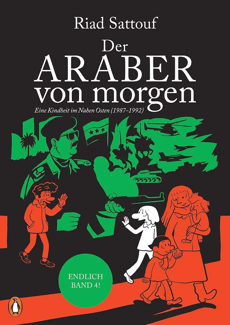 Die große autobiografische Erzählung ** »Der Araber von morgen« handelt von Riad Sattoufs Kindheit im Nahen Osten und wird sechs Bände umfassen. Band 1 (2015) geht von seiner Geburt bis zum 6. Lebensjahr, der kleine Riad und seine Familie leben mal in Libyen, mal Frankreich und Syrien. Band 2 (2016) berichtet von Riads erstem Schuljahr in der syrischen Dorfschule. In Band 3 (2017) ist Riad zwischen sechs und neun Jahre alt und beginnt langsam die Besonderheiten der Gesellschaft, in der er aufwächst, zu verstehen. Band 4 , mit 288 Seiten Sonderlänge, steuert auf einen dramatischen Höhepunkt und Coup des Vaters zu ...