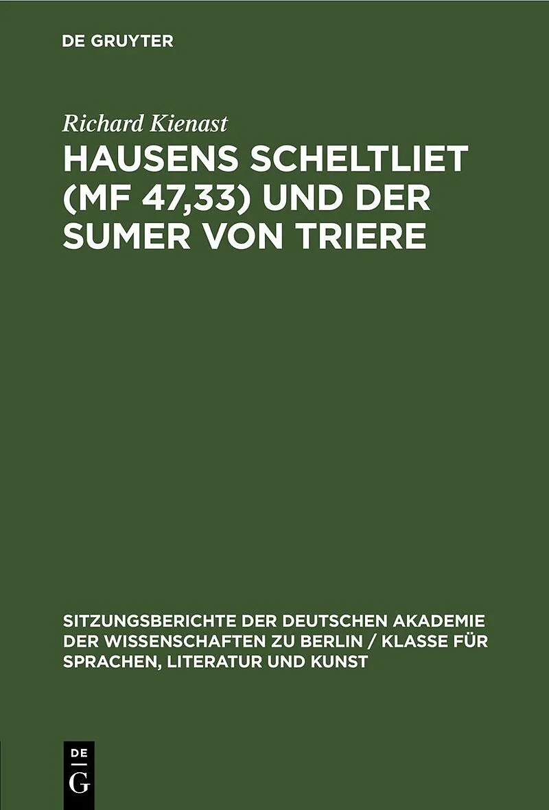 Dieser Titel, "Hausens Scheltliet (MF 47,33) und der Sumer von Triere", ist eine wissenschaftliche Publikation, erschienen bei De Gruyter Brill. Ausführliche Beschreibung, Inhaltsverzeichnis und weitere Angaben finden Sie auf der Verlagswebsite: https://www.de...
