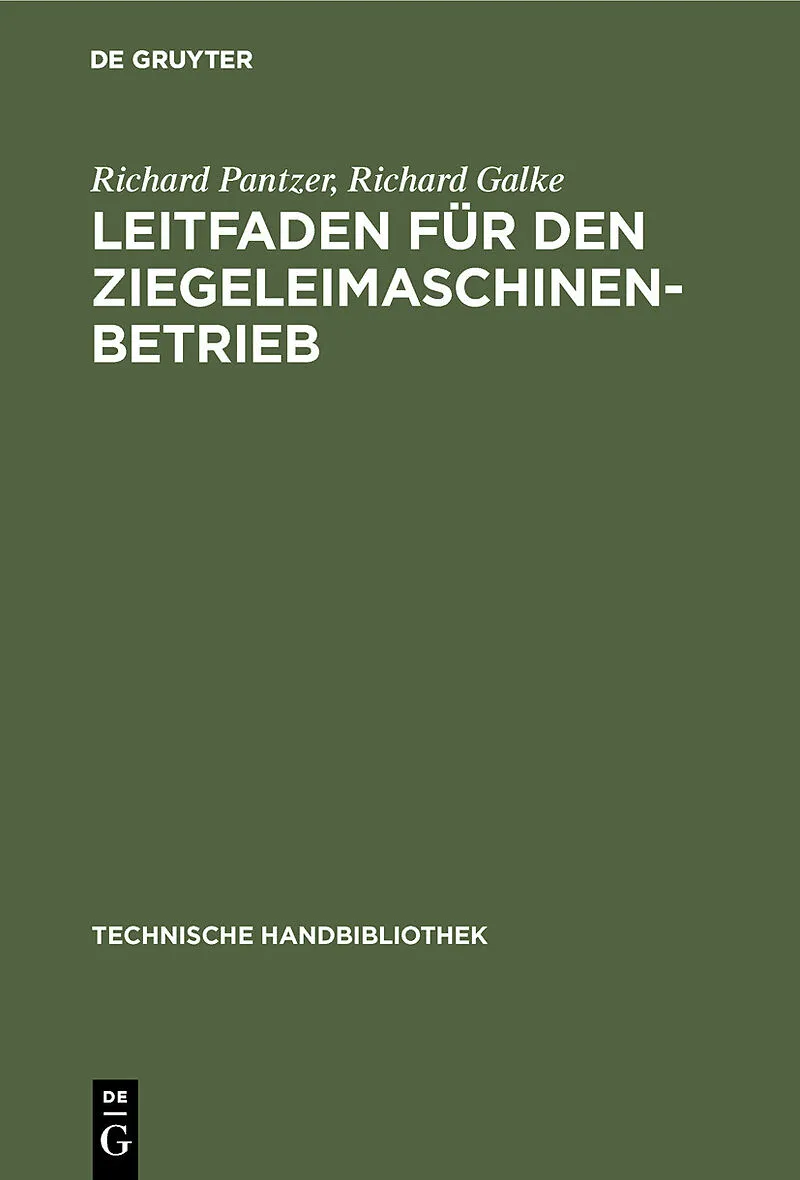 Frontmatter -- Vorwort -- Inhaltsverzeichnis -- Der Ton, seine Gewinnung, Eigenschaft und Verwertung -- Die Erfindung der Ziegelstrangpresse -- Die richtige Auswahl der Maschinen -- Winke für die Inbetriebsetzung neuer oder reparierter Maschinen -- Grundzüge f...