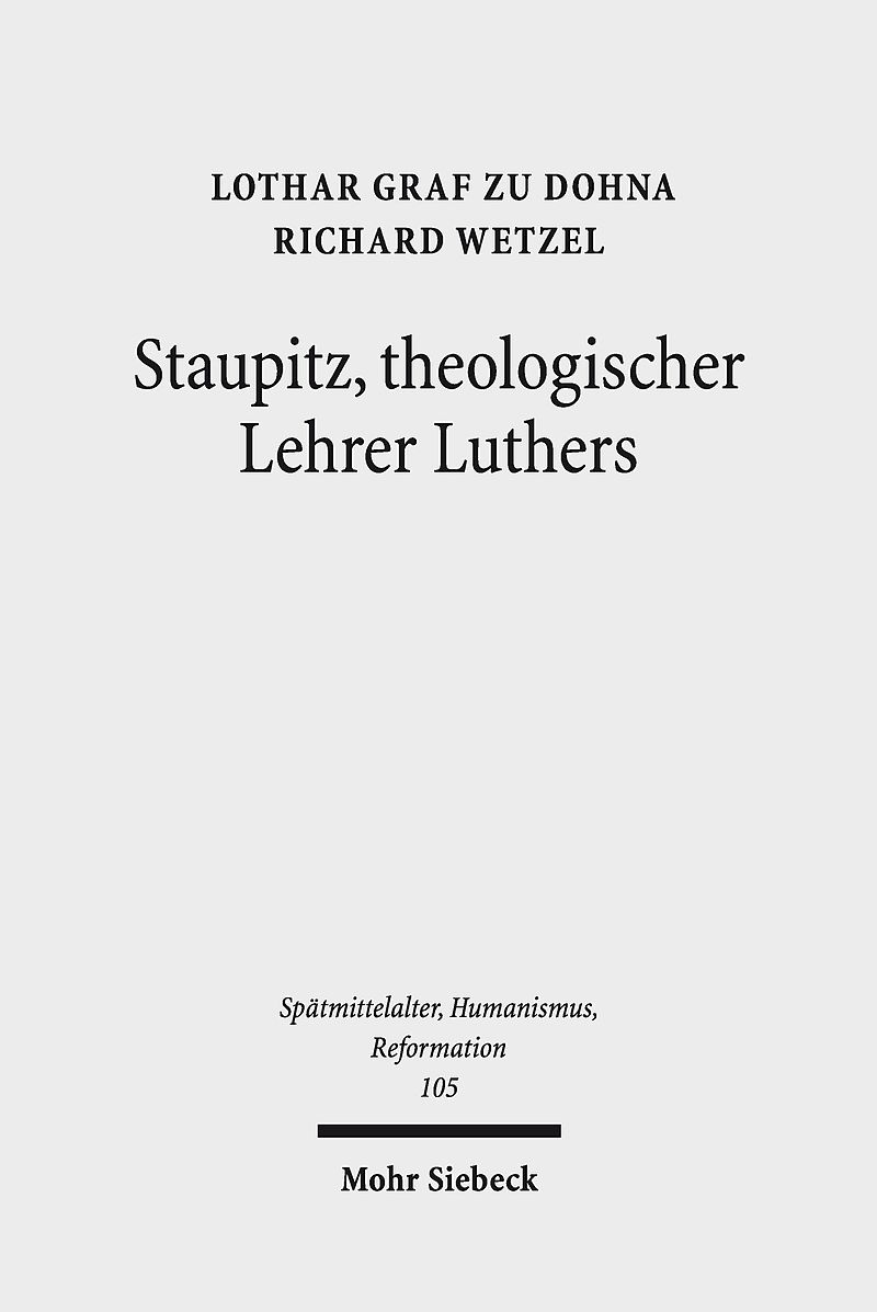 Lothar Graf zu Dohna and Richard Wetzel show that Luther's former mentor and father confessor Johann von Staupitz had a big influence on Luther, not only on his biography, but also on his theology, and so was a key figure in the early Reformation period. The t...