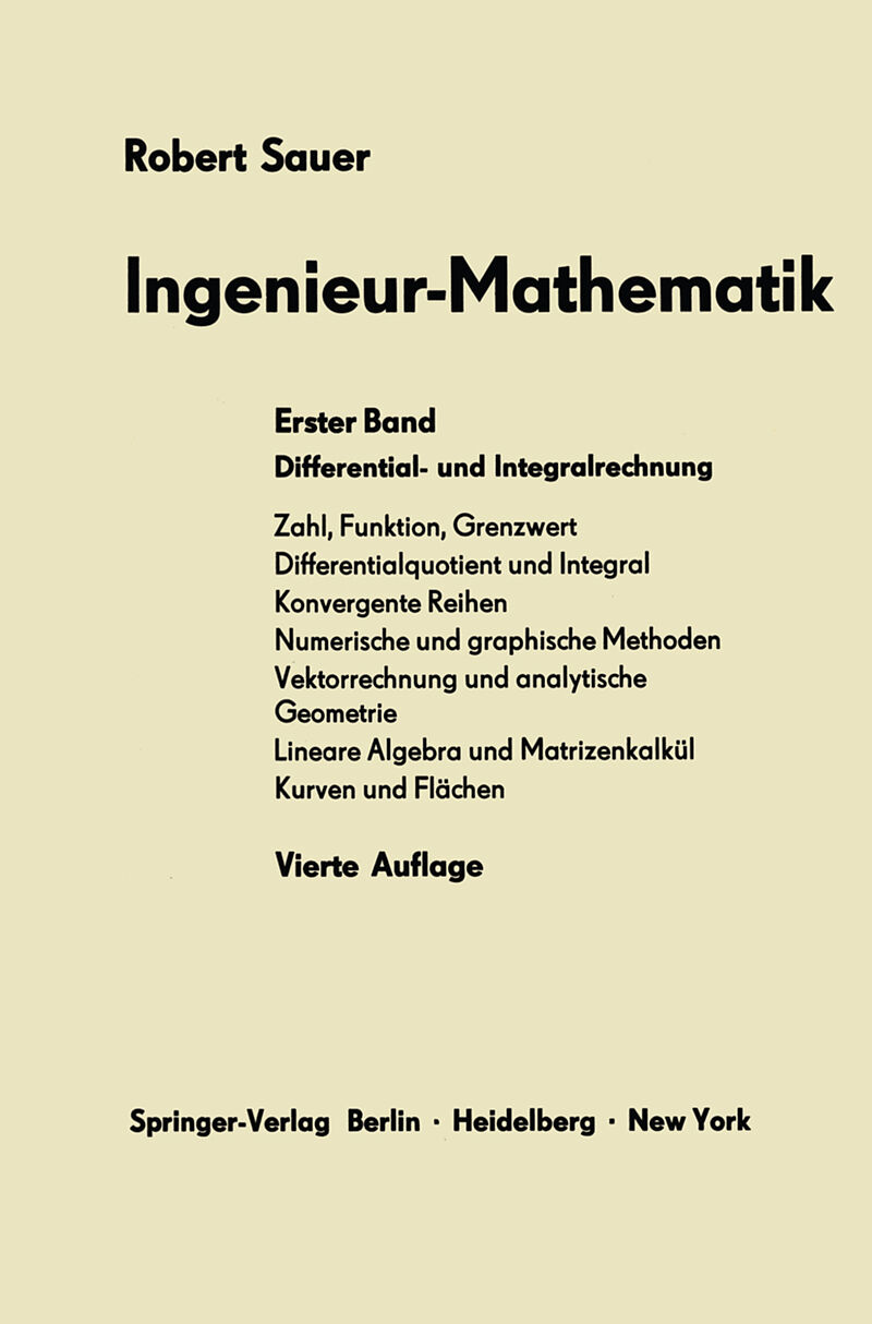 Inhalt I. Kapitel Differential- und Integralrechnung für Funktionen von einer Veränderlichen.- § 1. Reelle Zahlen.- § 2. Funktionen von einer Veränderlichen; Stetigkeit.- § 3. Spezielle Funktionen; Kurvendiskussion.- § 4. lineare analytische Geometrie der Eben...