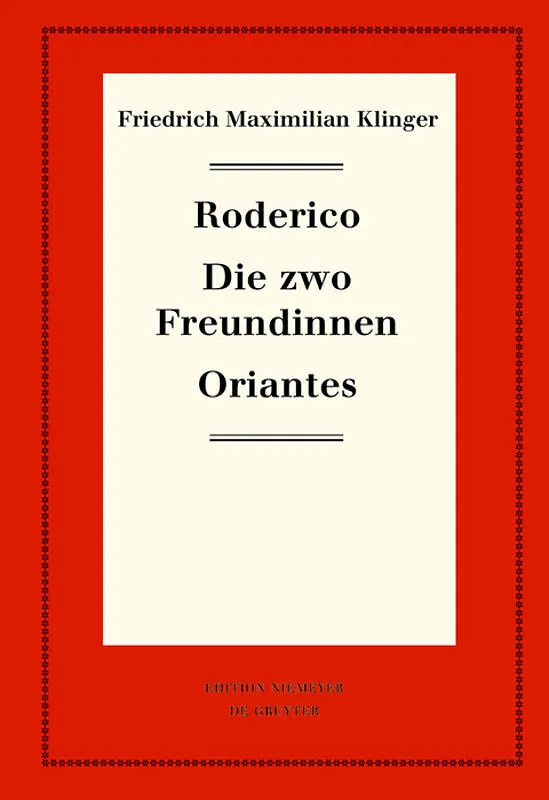 Klinger did not include the tragedies Roderico and Oriantes or the comedy Die zwo Freundinnen ( The Two Friends ) in his own edition of his works. Klinger was employed by the Russian Grand Duke Paul, and his titular characters' ideas of freedom and justice ta...