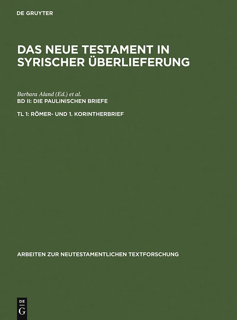 In der Reihe Arbeiten zur Neutestamentlichen Textforschung (ANTF) publiziert das Institut für Neutestamentliche Textforschung (Münster) seit 1963 grundlegende Untersuchungen und Studien zur Textkritik und Textgeschichte des griechischen Neuen Testaments. Die ...