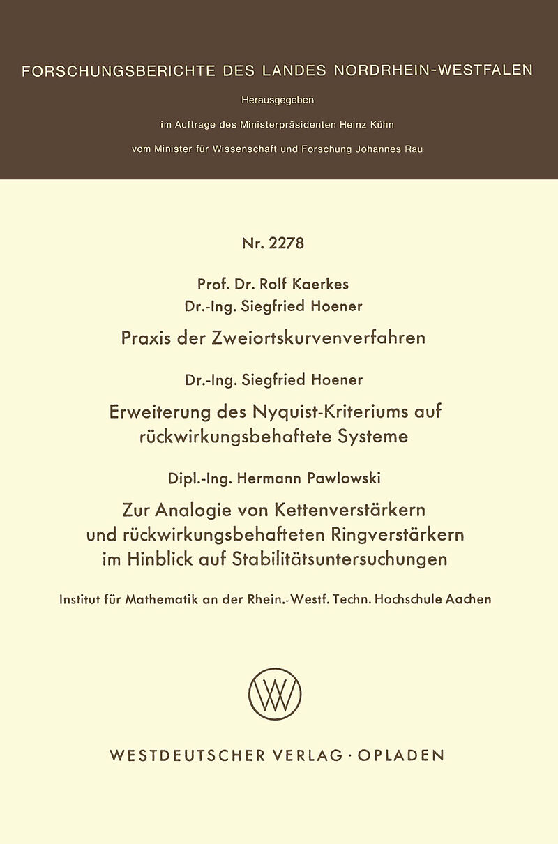 Inhalt Praxis der Zweiortskurvenverfahren.- Erweiterung des Nyquist-Kriteriums auf rückwirkungsbehaftete Systeme.- Zur Analogie von Kettenverstärkern und rückwirkungsbehafteten Ringverstärkern im Hinblick auf Stabilitätsuntersuchungen.