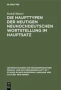 Dieser Titel, "Die Haupttypen der heutigen neuhochdeutschen Wortstellung im Hauptsatz", ist eine wissenschaftliche Publikation, erschienen bei De Gruyter Brill. Ausführliche Beschreibung, Inhaltsverzeichnis und weitere Angaben finden Sie auf der Verlagswebsite...