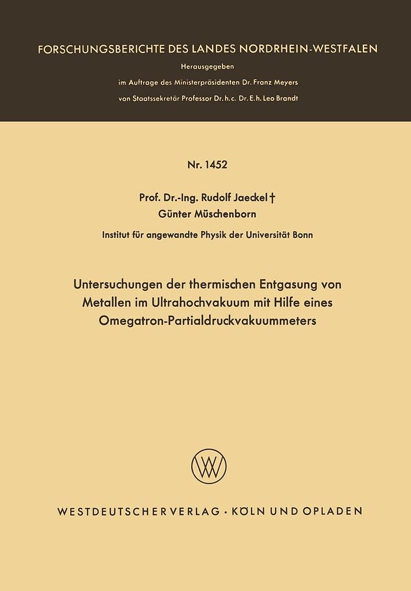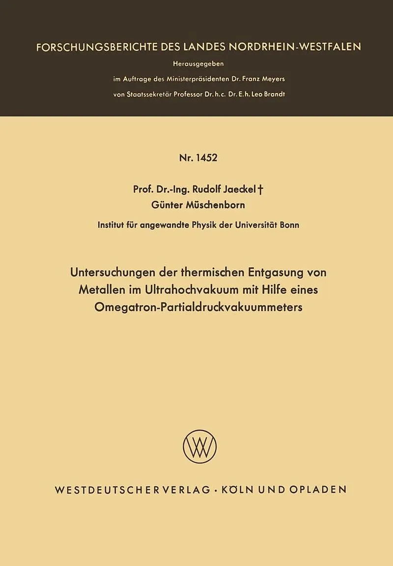 Inhalt 1. Problemstellung.- 2. Die Partialdruckeichung des Omegatrons.- 2.1 Das System.- 2.2 Messungen am Omegatron.- 3. Die Entgasung von Metallen.- 3.1 Zur Theorie der Entgasungsprozesse.- 3.2 Zur Messung der Entgasungsprozesse.- 3.3 Meßergebnisse.- 4. Zusam...