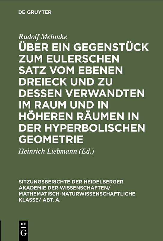 Keine ausführliche Beschreibung für "Über ein Gegenstück zum Eulerschen Satz vom ebenen Dreieck und zu dessen Verwandten im Raum und in höheren Räumen in der hyperbolischen Geometrie" verfügbar. Inhalt Frontmatter -- Über ein Gegenstück zum Eulerschen Satz vo...