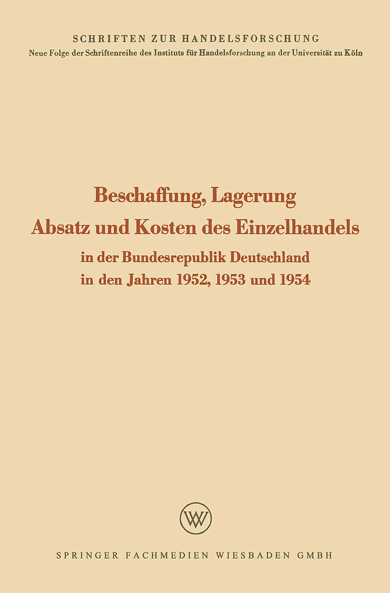Die erste Nummer der Schriftenreihe des Instituts für fhndelsforschung, die nach dem Kriege 195 3 veröffentlicht wurde, hat die Ergebnisse des vom Institut seit 1949 eingerichteten Betriebsvergleichs des Einzelhandels zum Gegenstande. In ihr wurden in 102 Tabe...Die erste Nummer der Schriftenreihe des Instituts für fhndelsforschung, die nach dem Kriege 195 3 veröffentlicht wurde, hat die Ergebnisse des vom Institut seit 1949 eingerichteten Betriebsvergleichs des Einzelhandels zum Gegenstande. In ihr wurden in 102 Tabellen Beschaffung, Lagerung, Absatz und Kosten des westdeutschen Einzelhandels dargestellt. Die Tabellen sind so angelegt, daß ein Vergleich dieser drei ersten Erhebungsjahre möglich ist. Die vorliegende Publikation enthält in der gleichen Anordnung und bei gleicher Numerierung der Tabellen die Ergebnisse des Betriebsvergleichs in den Jahren 1952, 1953 und 1954, sodaß mit beiden Bänden, der Nummer I und der Nummer 7 der Schrifrenreihe, der Zeit raum von 1949 bis 1954 erlaßt ist. Diese sechs untereinander vergleichbaren Jahre schließen eine sehr bemerkenswerte Entwicklung in sich ein, die im Textteil kommentiert ist. Es besteht die Absicht, auch über die nächsten drei Jahre entsprechend zu berichten, um dann anschließend unter Einbeziehung der Zahlen des zehnten Jahres des Betriebsvergleichs die Entwicklung in einem Dezennium zu untersuchen. 1 Die beiden bereits vorliegenden Dreijahresberichte 1949/51 und 19 52/54 sind wie der für 195 5 5 7 geplante und im Material für 195 5 bereits vorliegende Dreijahresbericht in erster Linie als Quellen werke gedacht. Ihre eingehende wissenschaltliehe Auswertung hat mit den Nummern 3 (Die Betriebs vergleichszahlen im Einzelhandel. insbesondere die der Personenabsatzleistung, von Dr. H. Ritter und Dr. F. Klein) und 4 (Über die Vergleichbarkeit der Handelsbetriebe, von Privatdozent Dr. H. Buddeberg) der vorliegenden Schriftenreihe bereits begonnen.