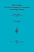 Inhalt Erstes Kapitel: Allgemeine Erörterung..- § 1. Die Differentialgleichung der elastischen Fläche einer Platte.- § 2. Die Voraussetzung der Gleichung für die Durchbiegung der rechteckigen Platte und ihre Grenzbedingungen.- § 3. Die Gleichung des unbestimmt...