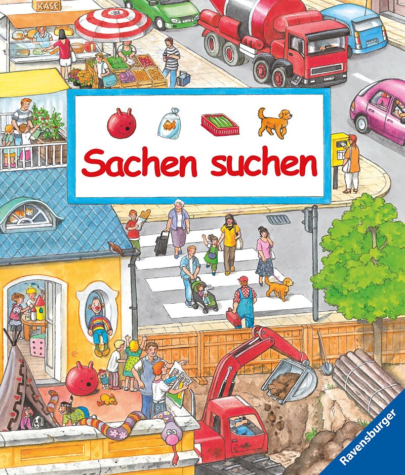 Das Erfolgsprinzip "Sachen suchen" hier mit neuen Bildern. Auf elf Doppelseiten gibt es rund um die wichtigsten Kinderthemen viel Neues zu entdecken. Hauptthemen sind die Feuerwehr, die Baustelle, der Kindergarten, der Bauernhof und der Flughafen.