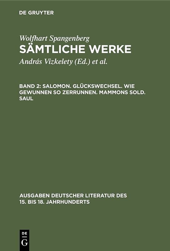 Dieser Titel, "Salomon. Glückswechsel. Wie gewunnen so zerrunnen. Mammons Sold. Saul", ist eine wissenschaftliche Publikation, erschienen bei De Gruyter Brill. Ausführliche Beschreibung, Inhaltsverzeichnis und weitere Angaben finden Sie auf der Verlagswebsite:...
