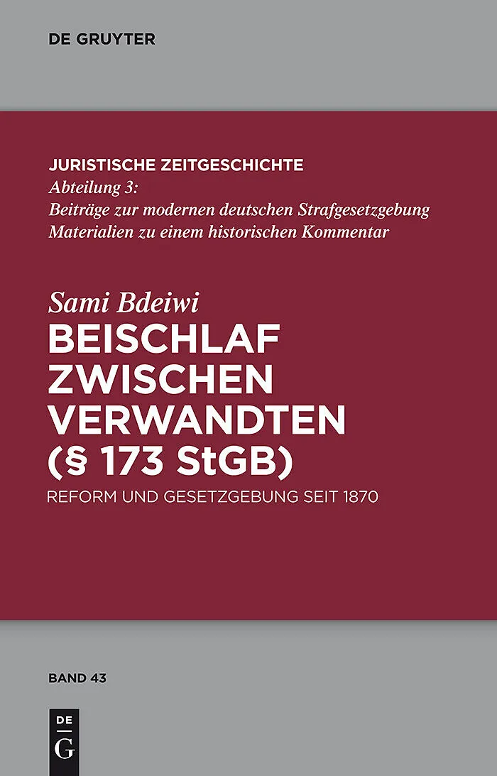 This volume furnishes the first comprehensive discussion of the history of reform debates and legislation from 1870 to the present day regarding the criminal offense of incest as defined under §173 of the StGB (German Criminal Code). Autorentext Sami Bdeiwi, ...