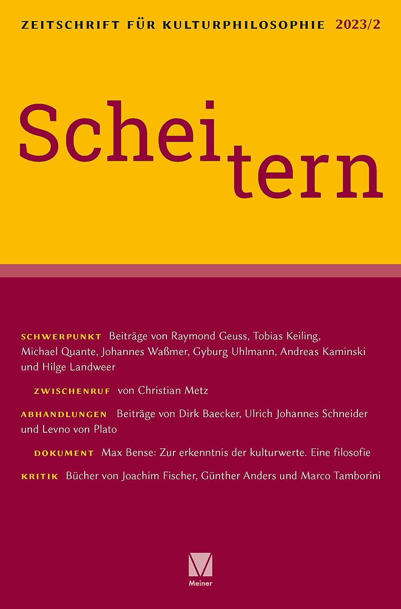 Die Möglichkeit des Scheiterns gehört, so scheint es, zur Selbstbestimmung des Menschen. Wer scheitert und woran? Welche Kriterien gibt es dafür? Wann ist etwas, wann ist jemand gescheitert? Was heißt es, über eine Kultur des Scheiterns und über das Scheitern ...
