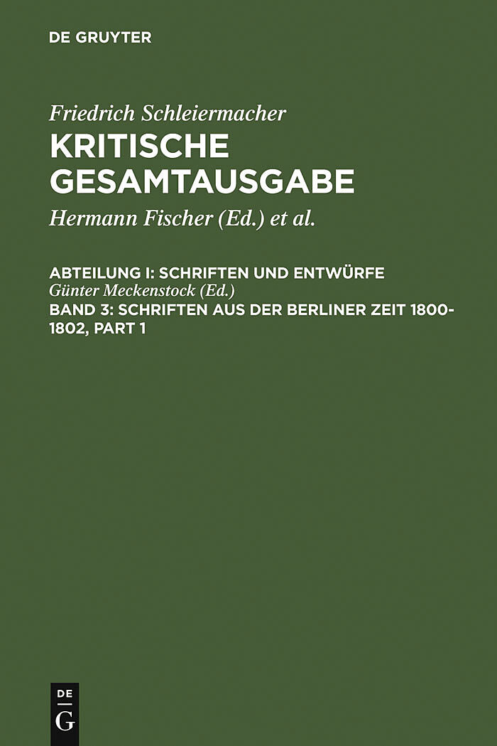Friedrich Daniel Ernst Schleiermacher (1768-1834) entfaltete in Berlin als Gemeindeprediger, Universitätsprofessor und Akademiemitglied ein wirkmächtiges theologisches und philosophisches System zwischen Aufklärung, Deutschem Idealismus und Romantik. Die Krit...
