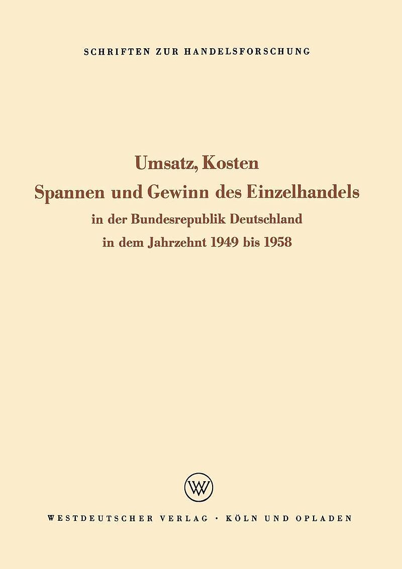 Der vorliegende 22. Band der "Schriften zur Handelsforschung" über Umsatz, Kosten, Spannen und Gewinn des Einzelhandels vollendet eine mit dem vor zehn Jahren erschienenen ersten Band der Schriftenreihe begonnene Publikationsfolge, die den Ergebnissen des Betr...