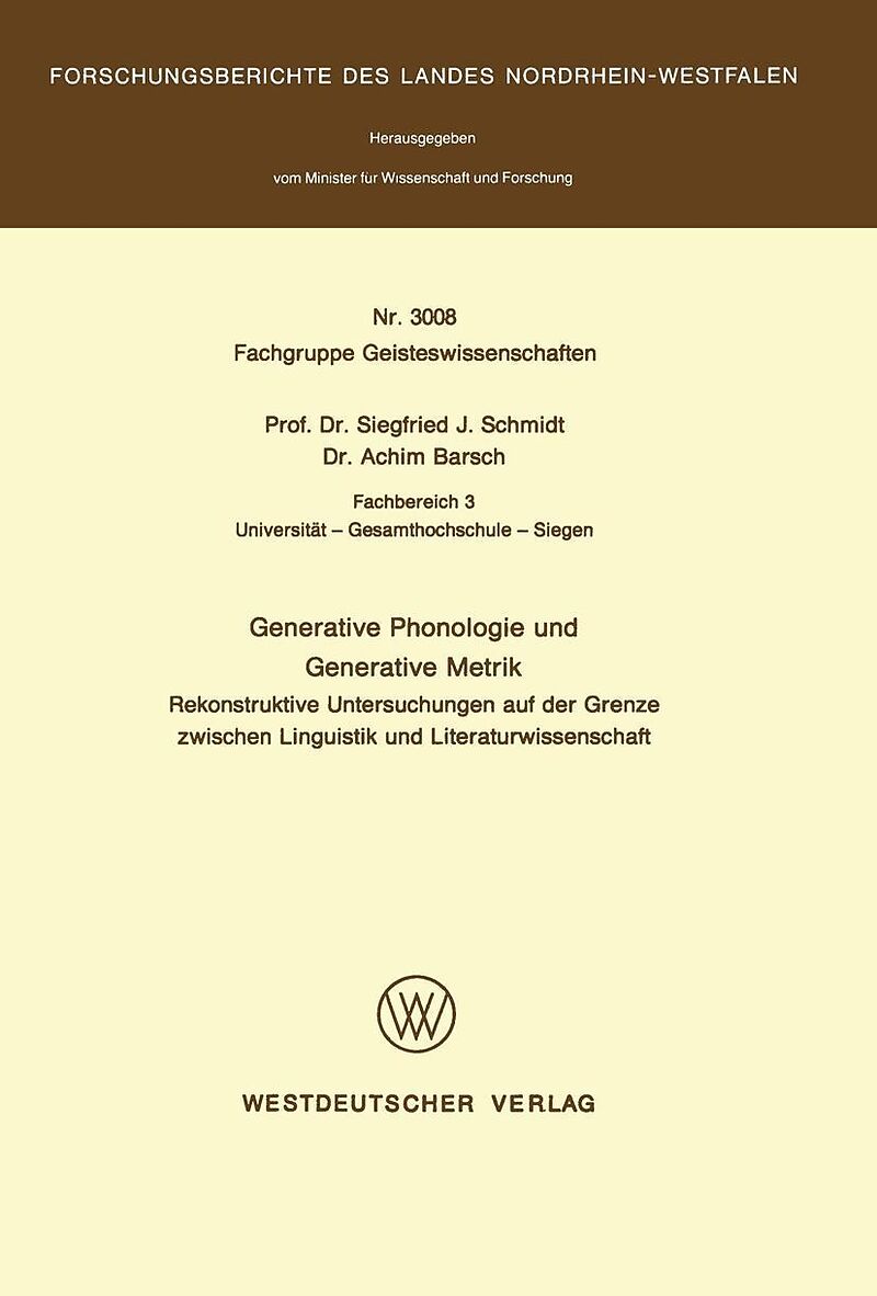 Inhalt 1. Zur Lokalisierung der Aufgabenstellung des Projekts.- 2. Einige Vorschläge zur Klärung der logischen Struktur linguistischer Poetiken.- 3. Generative Phonologie und generative Metrik.- 4. Beavers Ansatz zu einer generativen Metrik.- 5. Kiparskys Konz...
