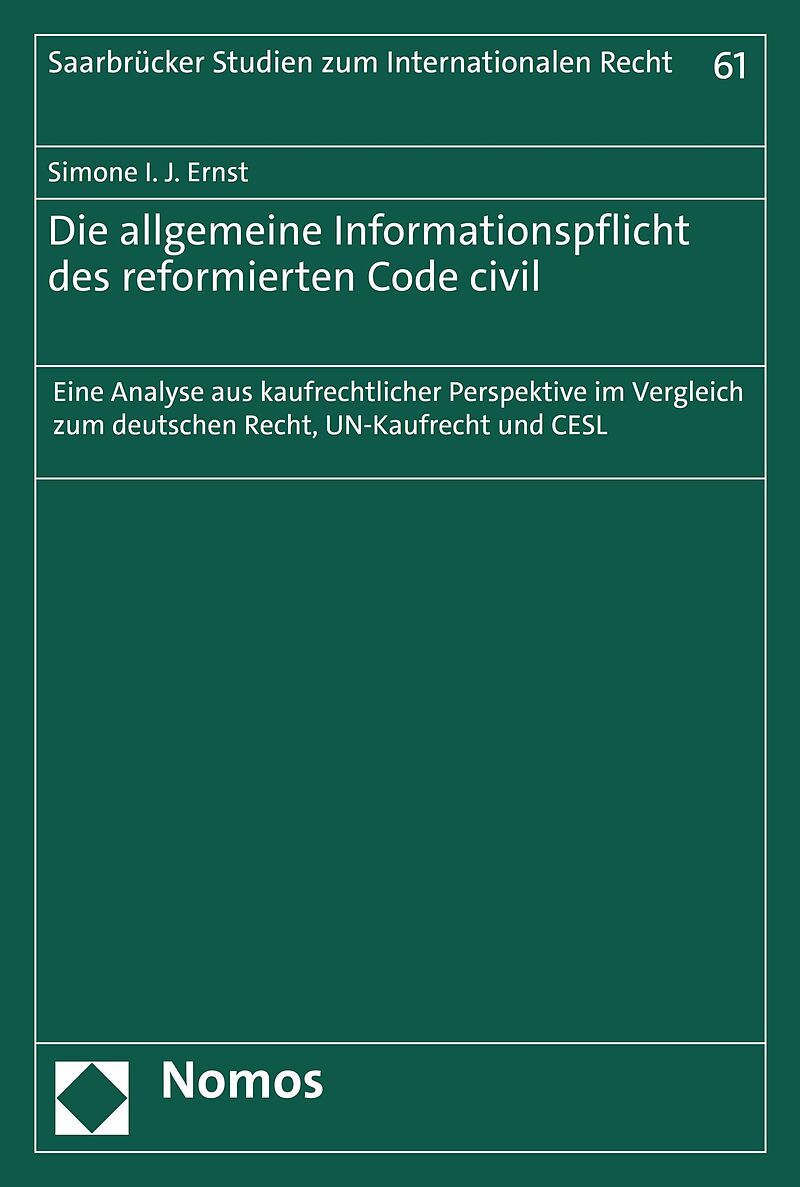Das Werk gibt Einblick in einen wichtigen Aspekt der französischen Schuldrechtsreform von 2016. Im Fokus der Untersuchung stehen die Entwicklung der Thematik in Frankreich und insbesondere die Normierung einer allgemeinen vorvertraglichen Informationspflicht, ...
