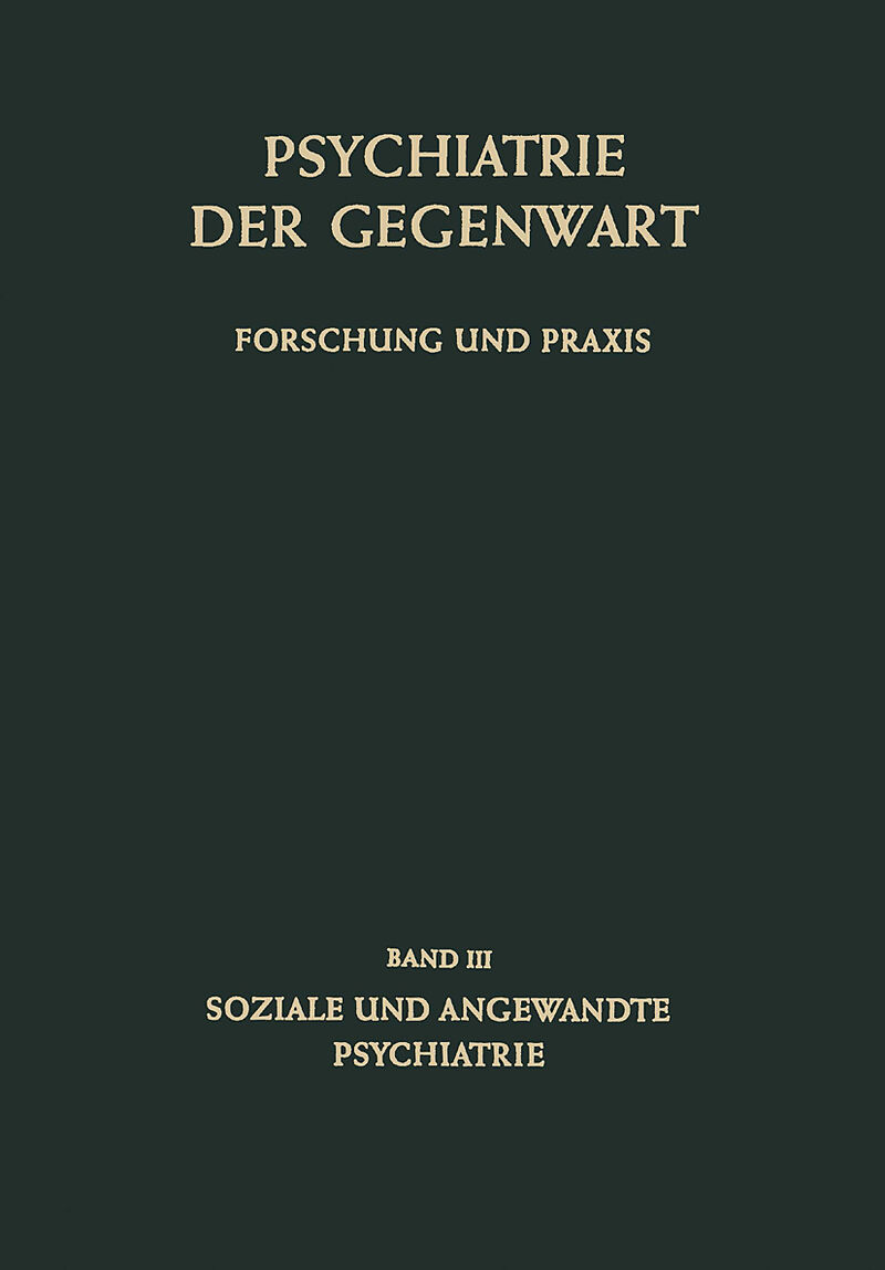 Der dritte Band dieses Werkes spiegelt, vielleicht mehr noch als der Grund lagenteil und die klinischen Abschnitte, entscheidende Wandlungen der Psych iatrie der Gegenwart wider: Ablösung der Psychiatrie von ihrer Ursprungsstätte, dem psychiatrischen Krankenha...Der dritte Band dieses Werkes spiegelt, vielleicht mehr noch als der Grund lagenteil und die klinischen Abschnitte, entscheidende Wandlungen der Psych iatrie der Gegenwart wider: Ablösung der Psychiatrie von ihrer Ursprungsstätte, dem psychiatrischen Krankenhaus, ihr Einströmen nicht nur in fachliche Grenz gebiete, sondern ins öffentliche Bewußtsein, und die Verlagerung der praktischen psychiatrischen Tätigkeit extra muros. Manche Beiträge behandeln Stoffgebiete, die in keinem früheren Hand- oder Lehrbuch der Psychiatrie erwähnt sind und vor 20 oder 30 Jahren auch noch nicht hätten geschrieben werden können. In einer ersten Gruppe von Beiträgen zur praktischen und sozialen Psychiatrie wird diese Wandlung besonders spürbar. Es lag den Herausgebern daran, hier neuen Ansichten und Bestrebungen Raum zu gewähren, die Problematik der vielfach durch aus noch im Flusse befindlichen Konzeptionen klarzustellen, ihre Vielfalt zu gliedern und zu ordnen und die Verbindungen mit den Nachbargebieten der Psychologie, Heilpädagogik, Sozialwissenschaft, Legislatur, Strafvollzug usw. zu verfolgen. Ein einleitender Abschnitt über die neueren Strömungen in der praktischen Psychiatrie behandelt in die Zukunft weisende Auffassungen über die Organisation und die baulichen Probleme des psychiatrischen Krankenhauses und des ambulan ten psychiatrischen Dienstes. Endgültige Lösungen sind noch nicht gefunden, die Richtung der nächsten Entwicklung wird aber deutlich sichtbar. Die soziale Psychiatrie befaßt sich mit den Einflüssen der Sozialstruktur auf die Entstehung und den Verlauf seelischer Störungen, mit der Stellung des psychisch kranken Menschen innerhalb der Gesellschaft, mit der Frage seiner Hospitalisations bedürftigkeit usw. , während der seelischeGesundheitsschutz die präventiven Maßnahmen für die gesunde Bevölkerung im Auge hat.