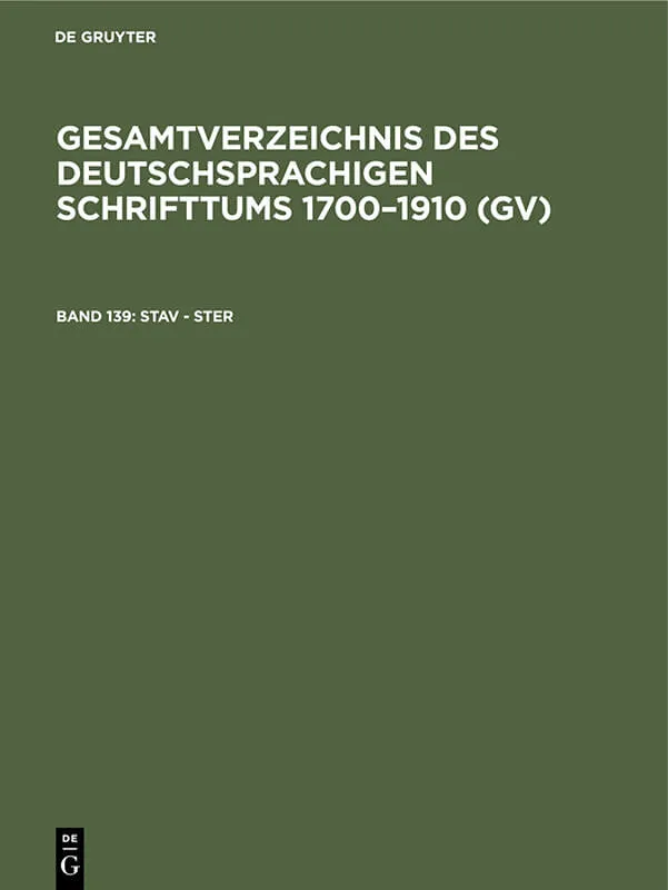 Frontmatter -- Gesamtverzeichnis des deutschsprachigen Schrifttums (GV) 1700 -1910: 139. Stav - Ster. Part 1 -- Gesamtverzeichnis des deutschsprachigen Schrifttums (GV) 1700 -1910: 139. Stav - Ster. Part 2