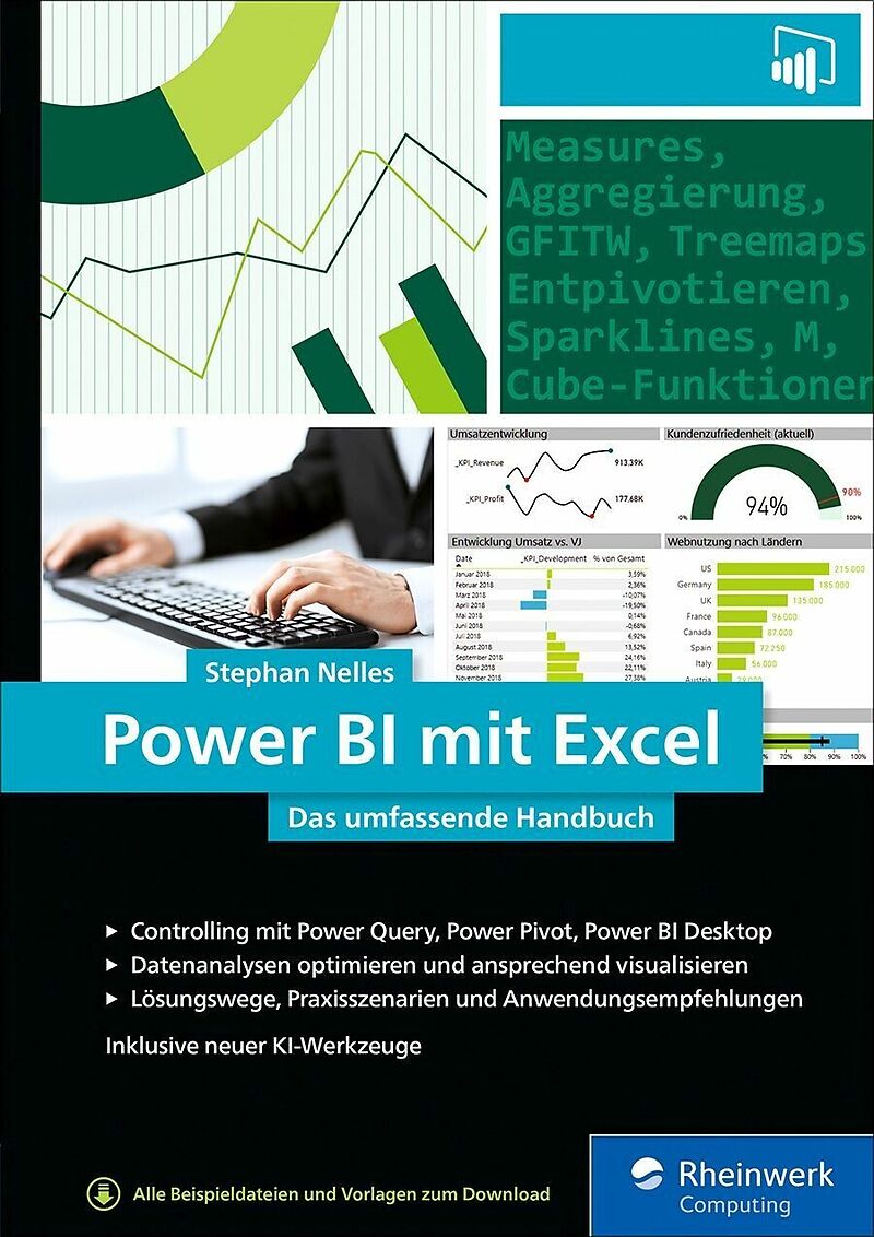 Power BI und Excel: ein starkes Team in Controlling und DatenanalysenSo bekommen Sie die Datenflut in den Griff! Dank Power BI lassen sich mit Excel auch große Datenmengen analysieren und ansprechend visualisieren. Mit diesem Buch erhalten Sie alles, was Sie f...Power BI und Excel: ein starkes Team in Controlling und DatenanalysenSo bekommen Sie die Datenflut in den Griff! Dank Power BI lassen sich mit Excel auch große Datenmengen analysieren und ansprechend visualisieren. Mit diesem Buch erhalten Sie alles, was Sie für den Arbeitsalltag benötigen: umfassende und verständliche Erklärungen anhand anschaulicher Szenarien aus der Praxis. Stephan Nelles zeigt Ihnen den Umgang mit Rohdaten aus unterschiedlichen Datenquellen und deren Bereinigung, Verknüpfung, Analyse und Visualisierung. Sie erfahren, wie Ihnen das Zusammenspiel von Excel mit Power Query, Power Pivot und Power BI Desktop effizient gelingt. So wenden Sie Business Intelligence gewinnbringend für Ihr Unternehmen an!Aus dem Inhalt:Was ist Self-BI? Welche Tools leisten was?Power Query Grundlagen der BedienungPower Query statt TextfunktionenAbfragen zusammenführen/anhängenPower Query Formula Language: M für FortgeschrittenePower Pivot Grundlagen der BedienungBedingte Kalkulationen: CALCULATE()Berechnungen über mehrere Tabellen erstellenKalendertabelle einbindenSparklines und bedingte Formate benutzenPower BI Desktop Grundlagen der BedienungGrundlagen der DatenvisualisierungStandarddiagrammeInteraktionen & SlicerDashboards veröffentlichenPower BI Service effizienteres Teamwork