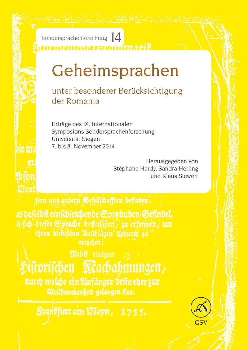 Der vorliegende Band versammelt die Beiträge des IX. Internationalen Symposions Sondersprachenforschung, das am 7. und 8. November 2014 am Romanischen Seminar der Universität Siegen stattgefunden hat. Dabei war der Blick diesmal besonders auf die Romania geric...
