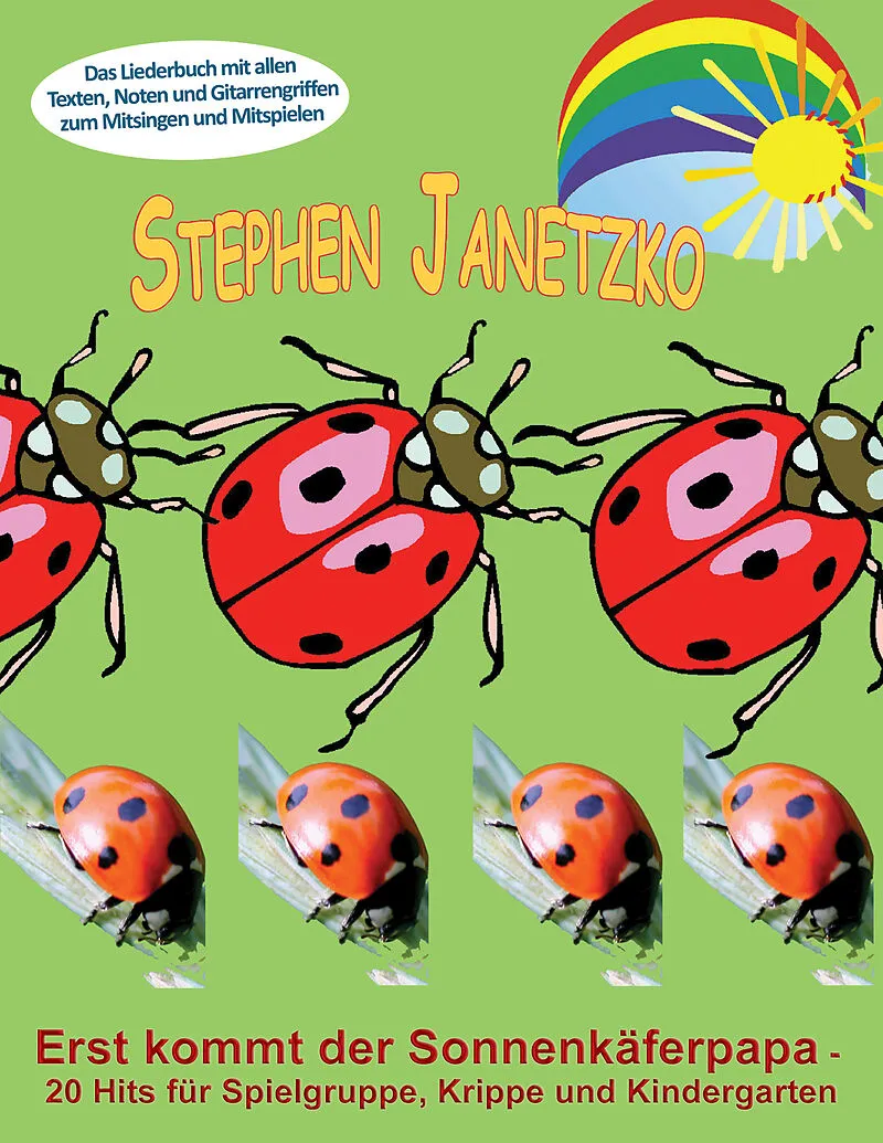 Erst kommt der Sonnenkäferpapa - 20 Hits für Spielgruppe, Krippe und Kindergarten. Das Liederbuch mit allen Texten, Noten und Gitarrengriffen zum Mitsingen und Mitspielen. Neue Kinderlieder von Stephen Janetzko. Alle im Buch enthaltenen Lieder: 1. Erst kommt d...