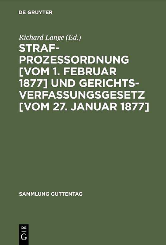 Dieser Titel, "Strafprozessordnung [vom 1. Februar 1877] und Gerichtsverfassungsgesetz [vom 27. Januar 1877]", ist eine wissenschaftliche Publikation, erschienen bei De Gruyter Brill. Ausführliche Beschreibung, Inhaltsverzeichnis und weitere Angaben finden Sie...
