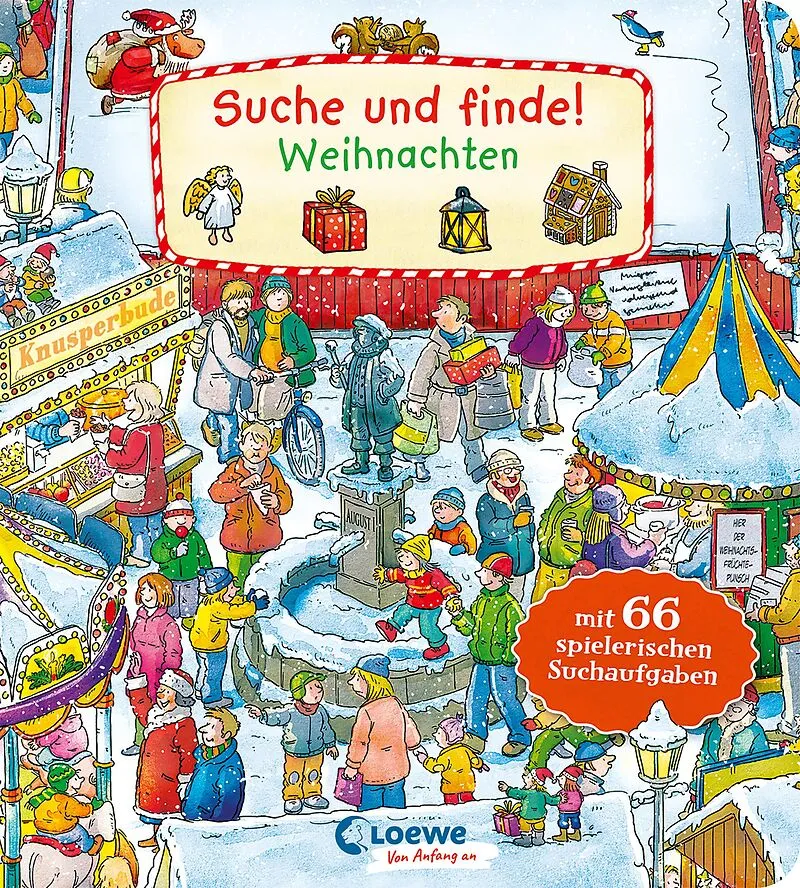Ein toller Wimmelspaß zum Suchen und Finden! In der Weihnachtszeit ist was los! Es werden Plätzchen gebacken, Weihnachtssterne gebastelt und Geschenke verpackt. Und was es auf dem Weihnachtsmarkt erst alles zu entdecken gibt! . Liebevolle Wimmelszenen . Erste...