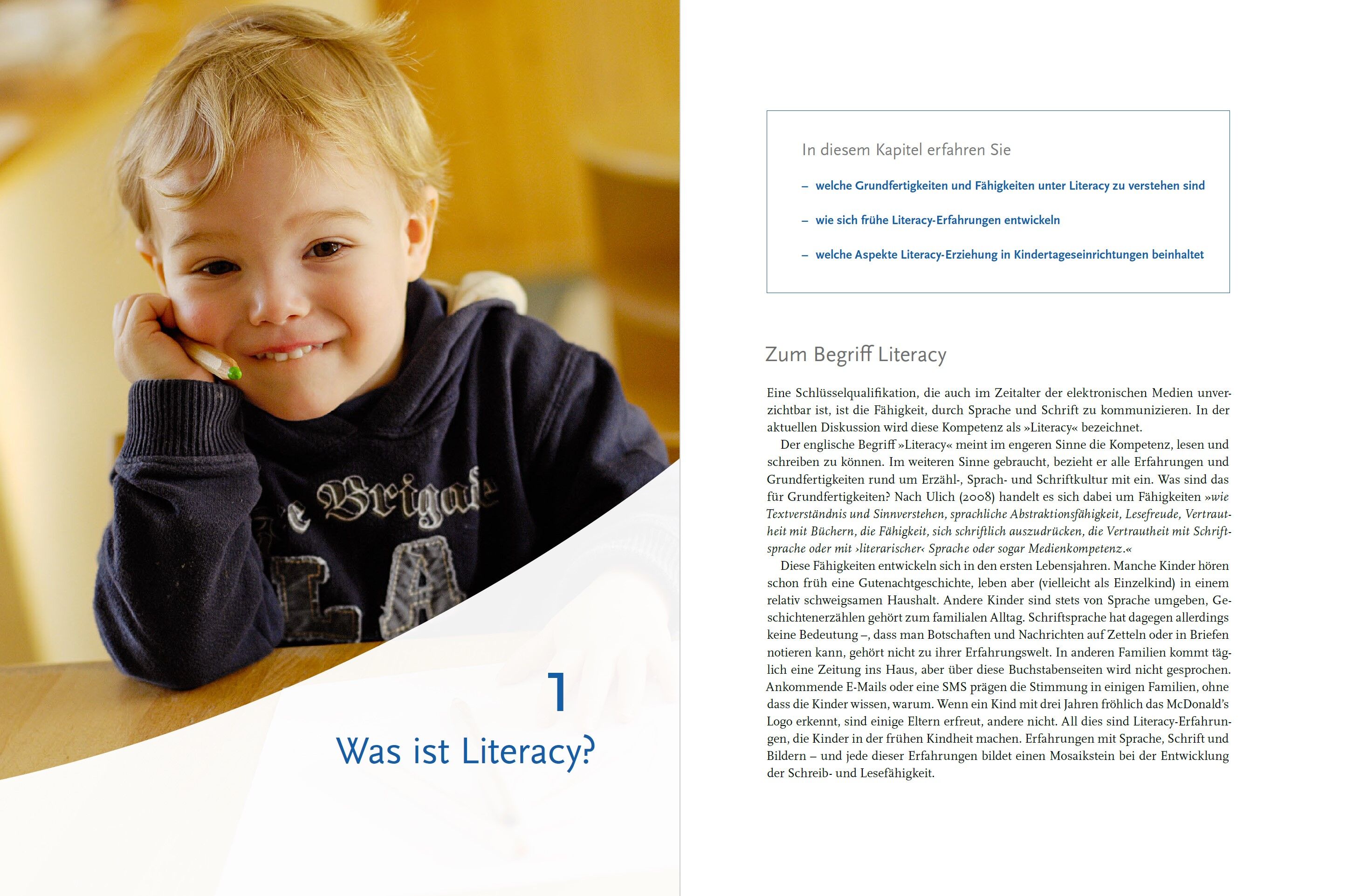 Bereits in der frühen Kindheit zeigen Kinder ein starkes Interesse an Sprache und Schrift. Literacy-Erfahrungen stecken überall: in selbst erfundenen Geschichten, im Vorlesen und im Bilderbuch, in Reimen und Gedichten, im Bilderbuchkino, in auditiven Medien u...