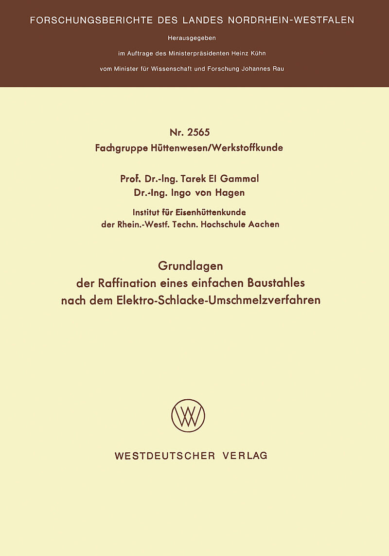 Inhalt 1. Einleitung.- 2. Literaturübersicht.- 2.1. Verfahren.- 2.2. Metallurgische Grundlagen.- 2.3. Qualität und Eigenschaften des umgeschmolzenen Stahls.- 2.4. Versuchsziel.- 3. Versuchsdurchführung.- 3.1. Versuchsanlage.- 3.2. Stahlqualität.- 3.3. Elektrod...