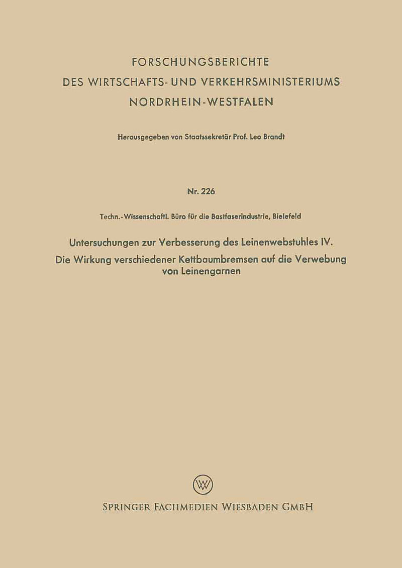 Untersuchungen zur Verbesserung des Leinenwebstuhles IV. Die Wirkung verschiedener Kettbaumbremsen auf die Verwebung von Leinengarnen