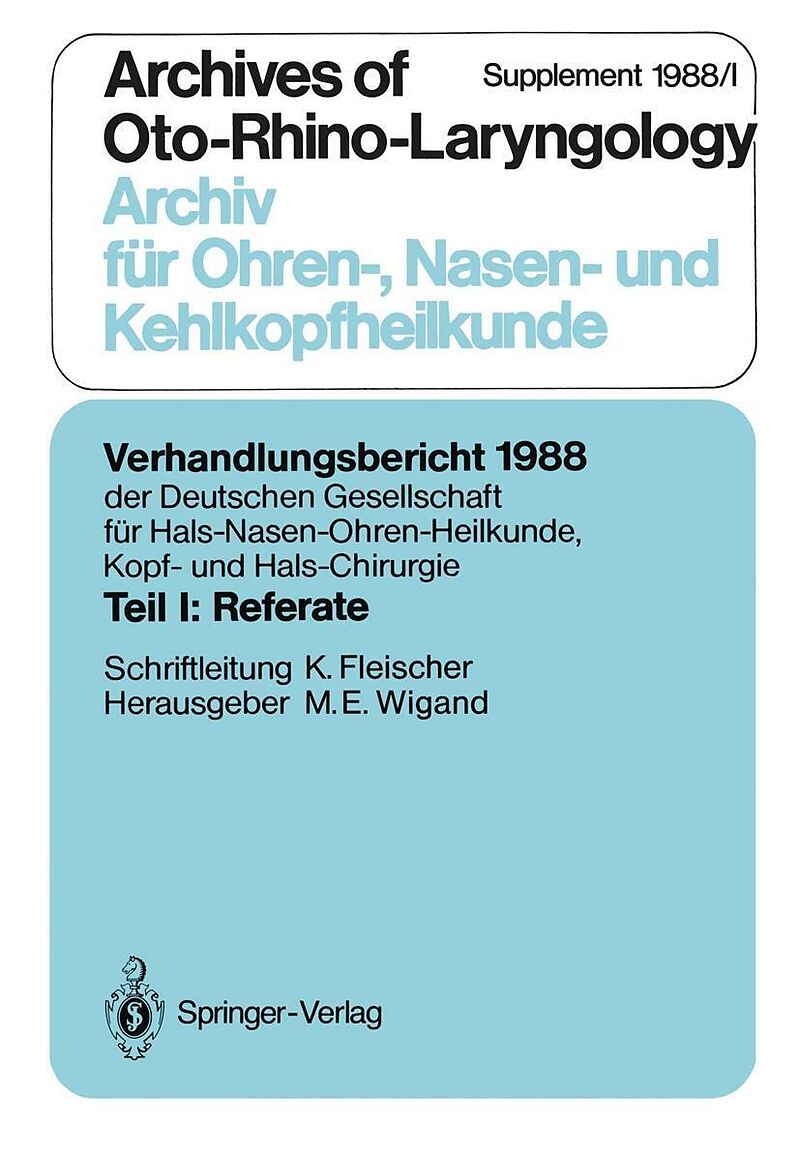 Teil I des Verhandlungsberichtes 1988 der Deutschen Gesellschaft für Hals-Nasen-Ohren-Heilkunde, Kopf- und Halschirurgie enthält die Hauptreferate, die von besonderen Sachkennern für die Jahresversammlung geschrieben wurden. M. Weidenbecher befaßt sich mit den...