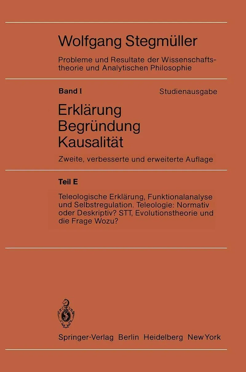 Inhalt VIII. Teleologie, Funktionalanalyse und Selbstregulation.- 1. Einleitung und Überblick.- 2. Formale Teleologie.- 3. Zielgerichtetes Handeln. Zum Problem der ontologischen und semantischen Interpretation echter materialer teleologischer Erklärungen.- 4. ...
