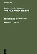 The volume contains textual material, most of it unpublished hitherto, for the second part of the "Republic of Scholars", which Klopstock had planned but never executed. In addition, it presents the early printed version of the "Laws of the Republic of Schola...
